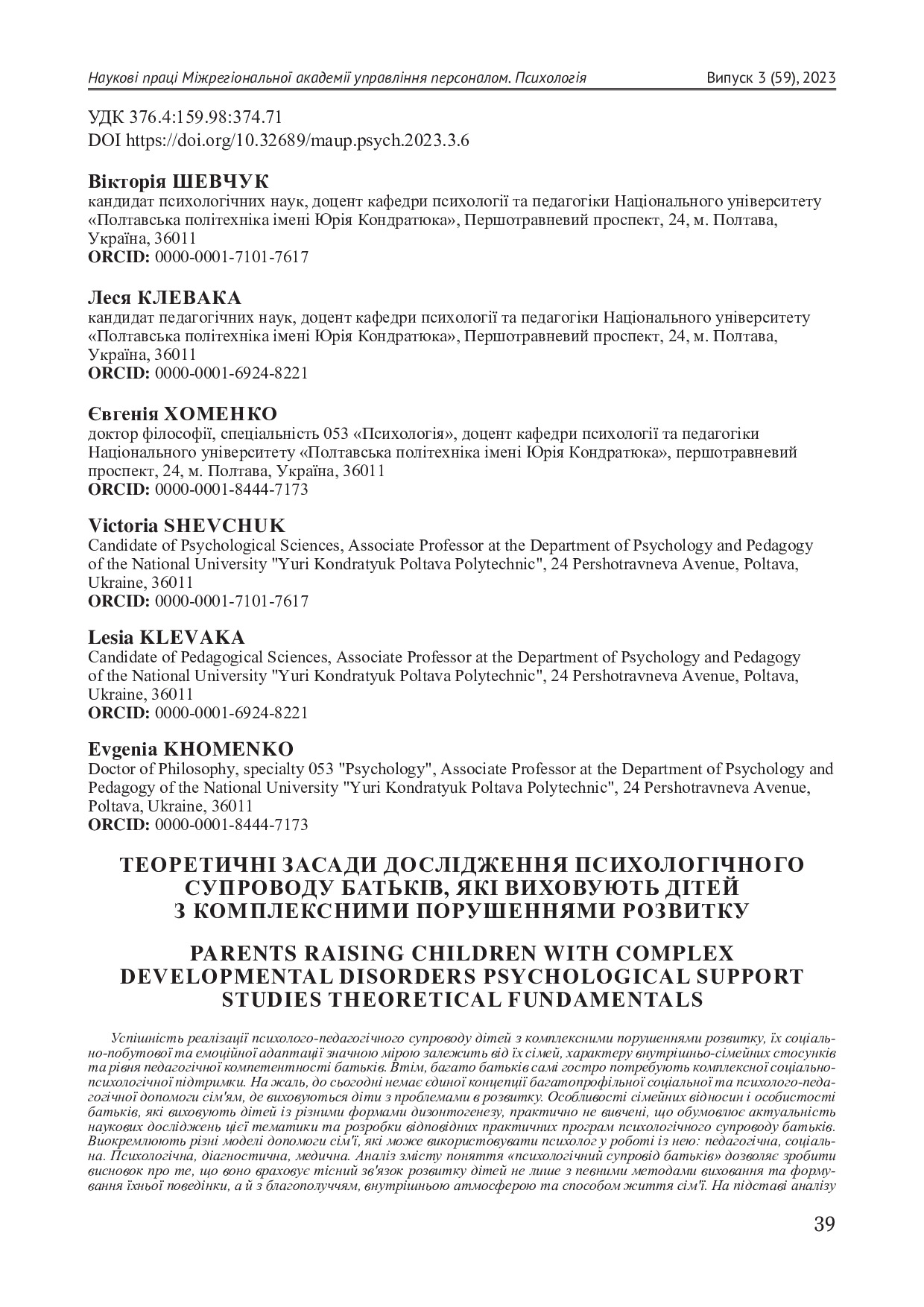 Теоретичні засади дослідження психологічного супроводу батьків, які виховують дітей з комплексними порушеннями розвитку