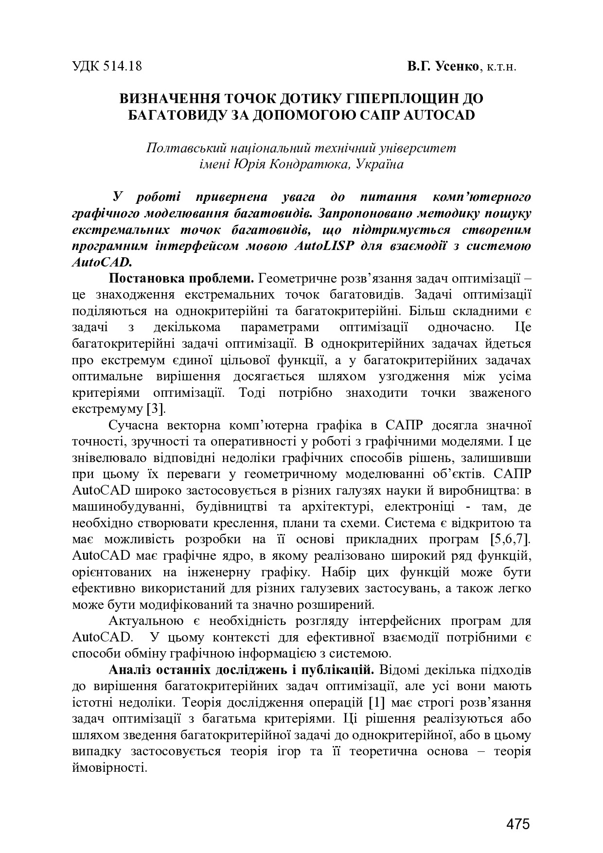 Визначення точок дотику гіперплощин до багатовиду за допомогою СапрAutocad