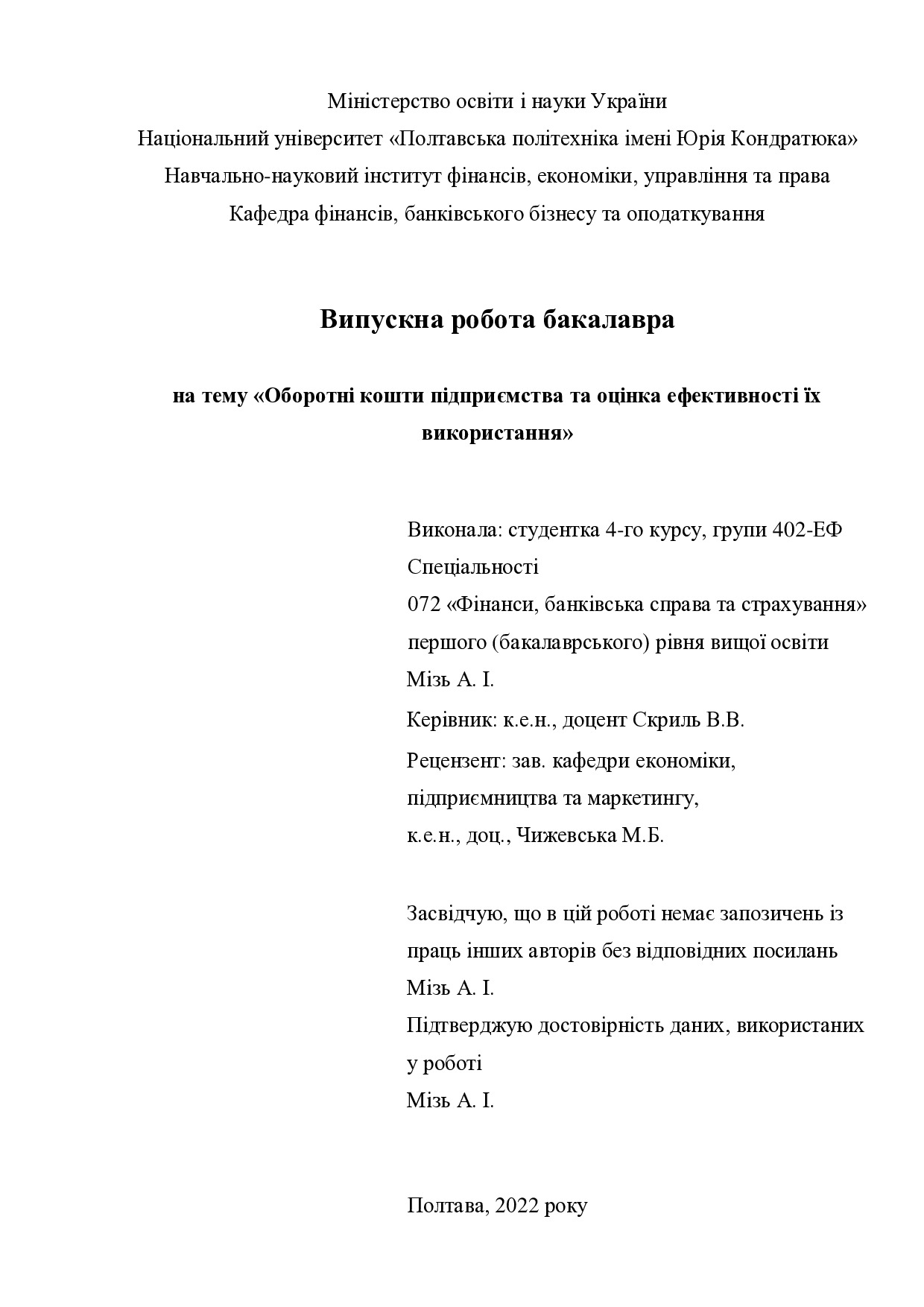 Оборотні кошти підприємства та оцінка ефективності їх використання