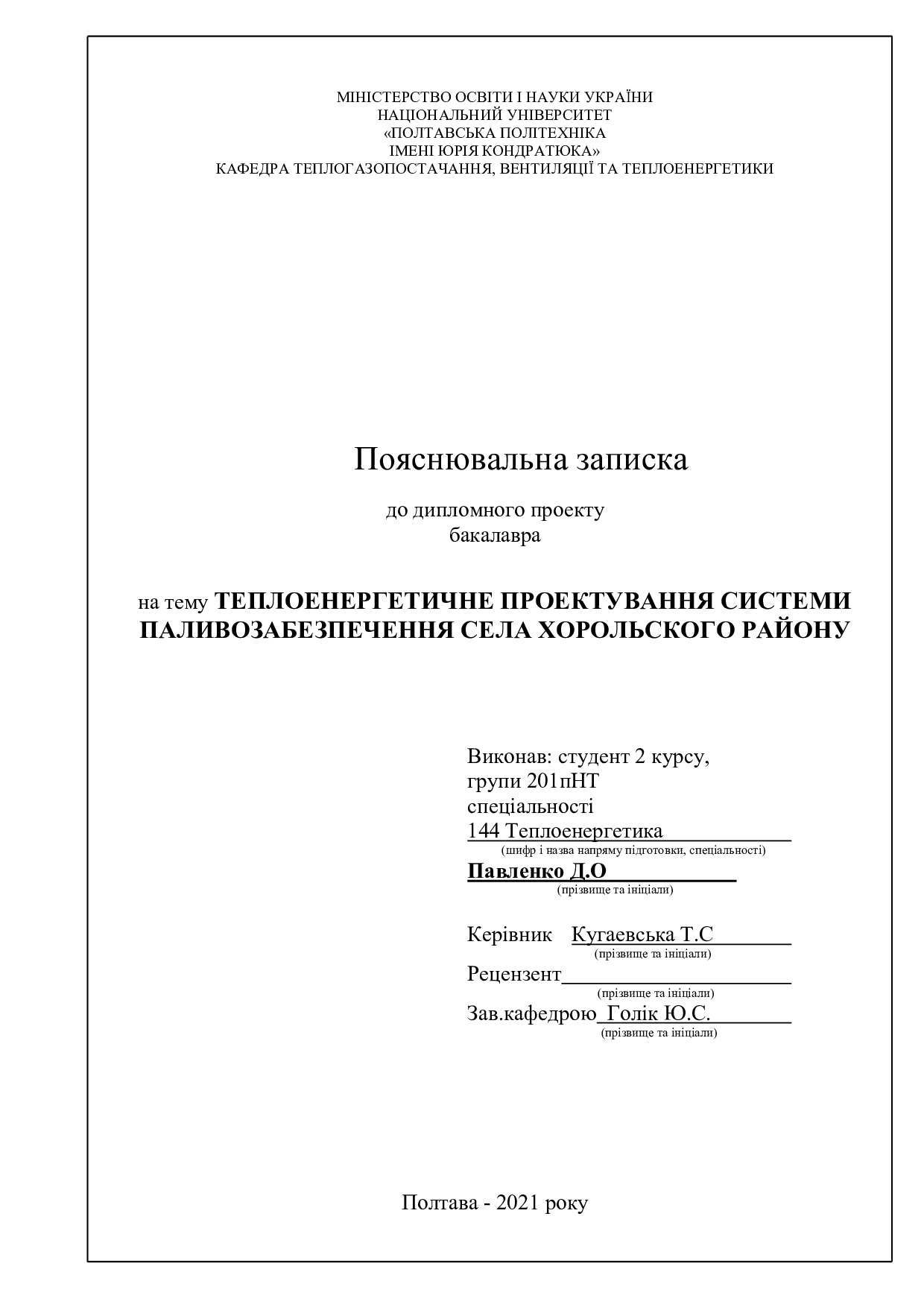 Теплоенергетичне проєктування системи паливозабезпечення села Хорольского району