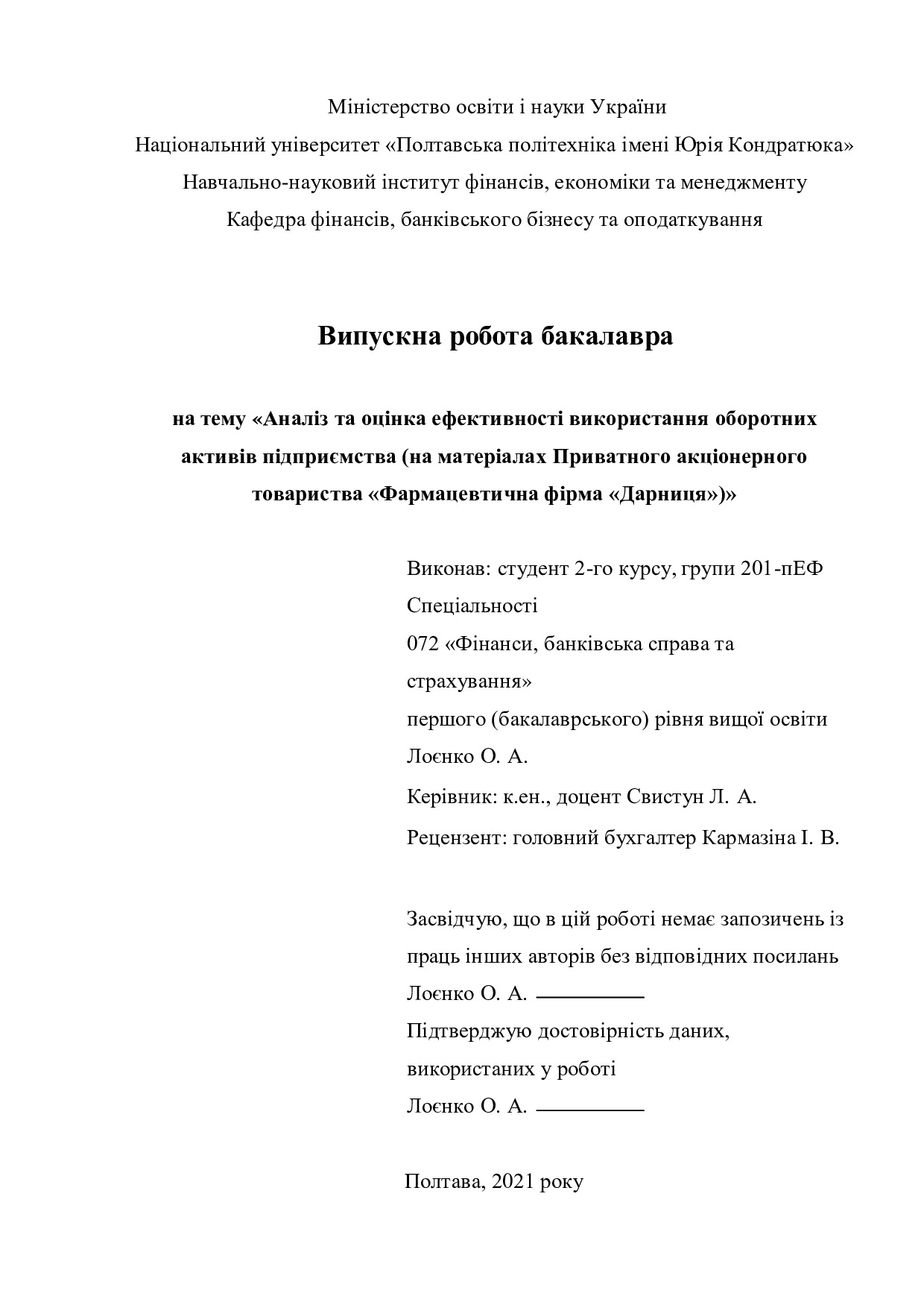 Аналіз та оцінка ефективності використання оборотних активів підприємства