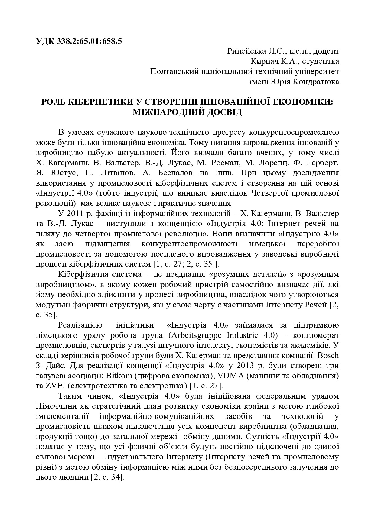 Роль кібернетики у створення інноваційної економіки: міжнародний досвід