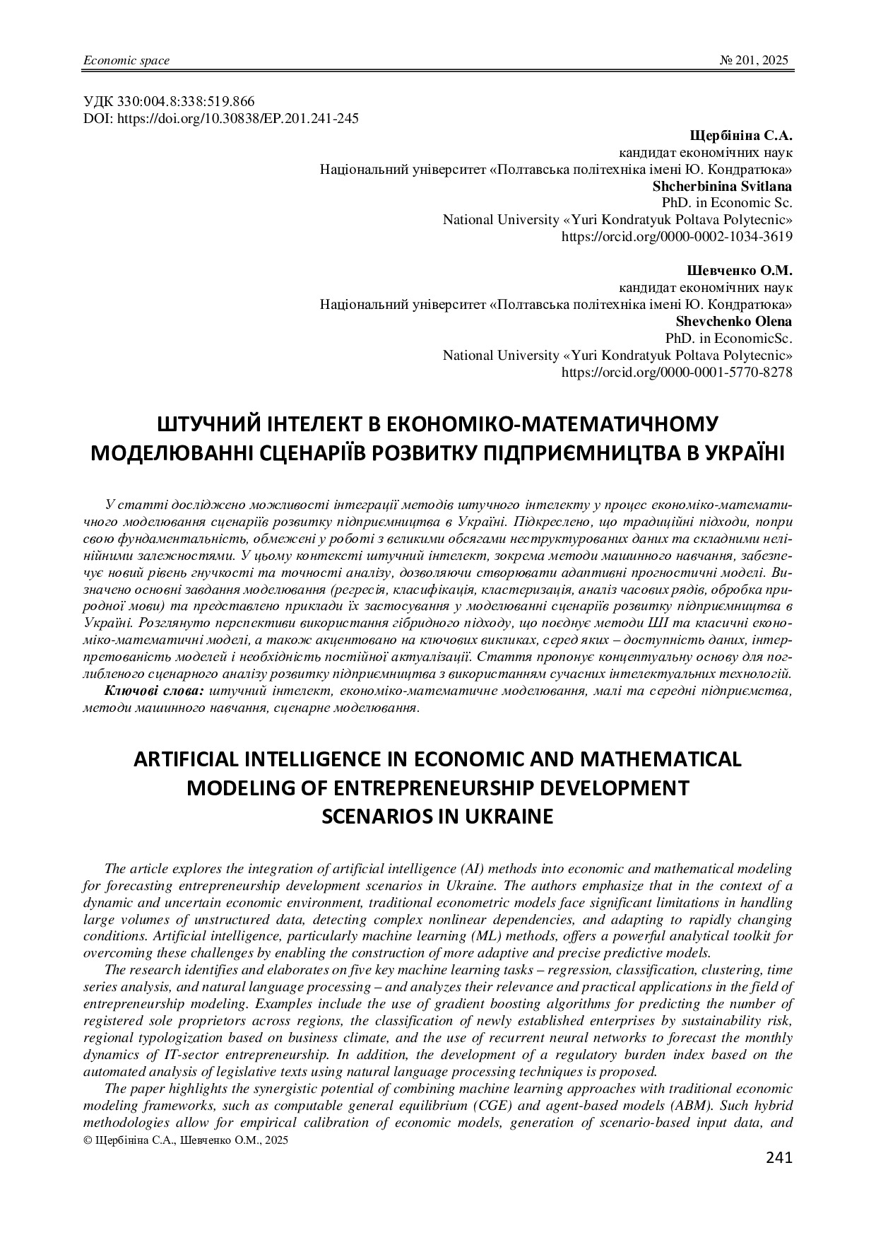 Штучний інтелект в економіко-математичному моделюванні сценаріїв розвитку підприємництва в Україні