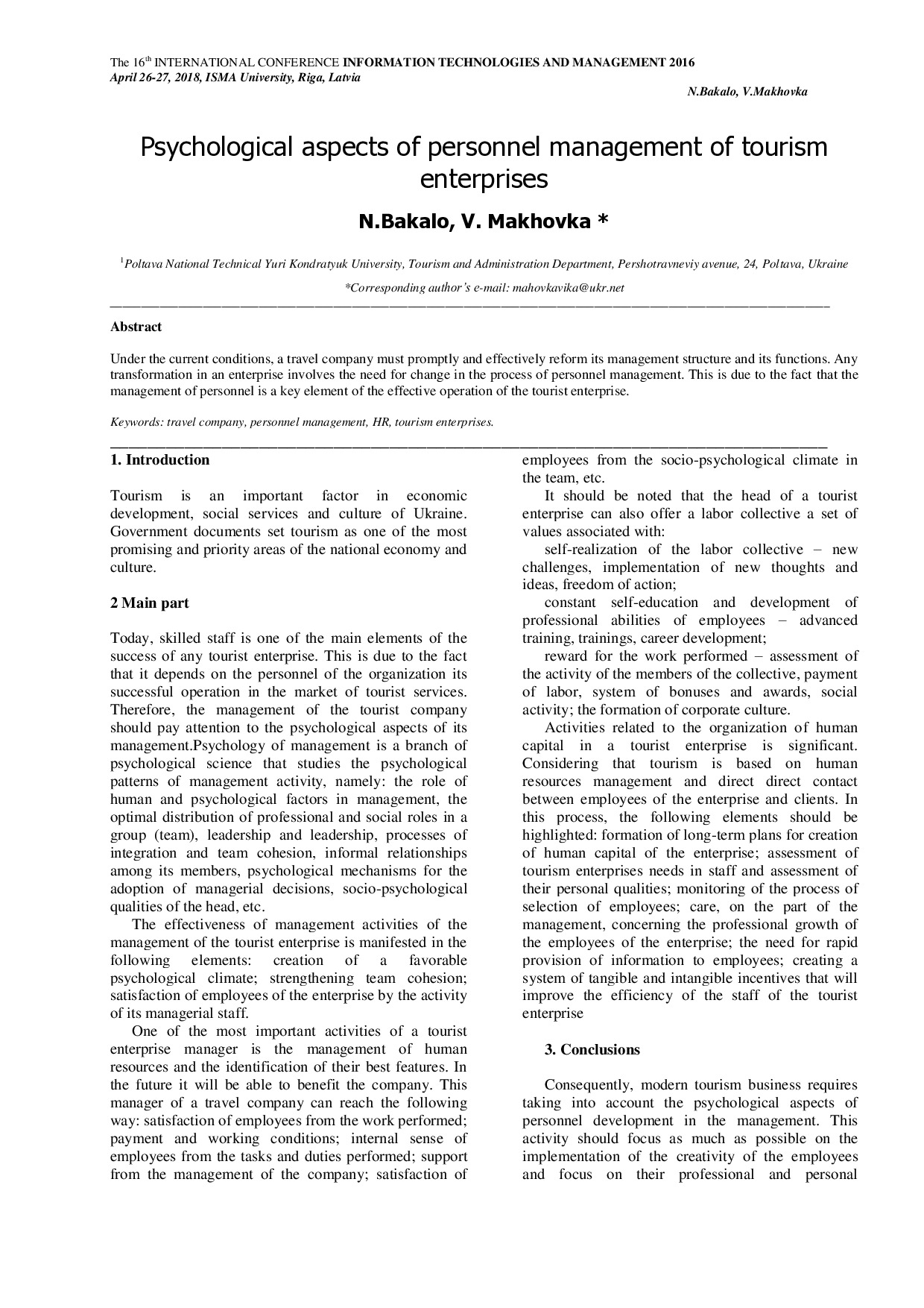 Psychological aspects of personnel management of tourism enterprises