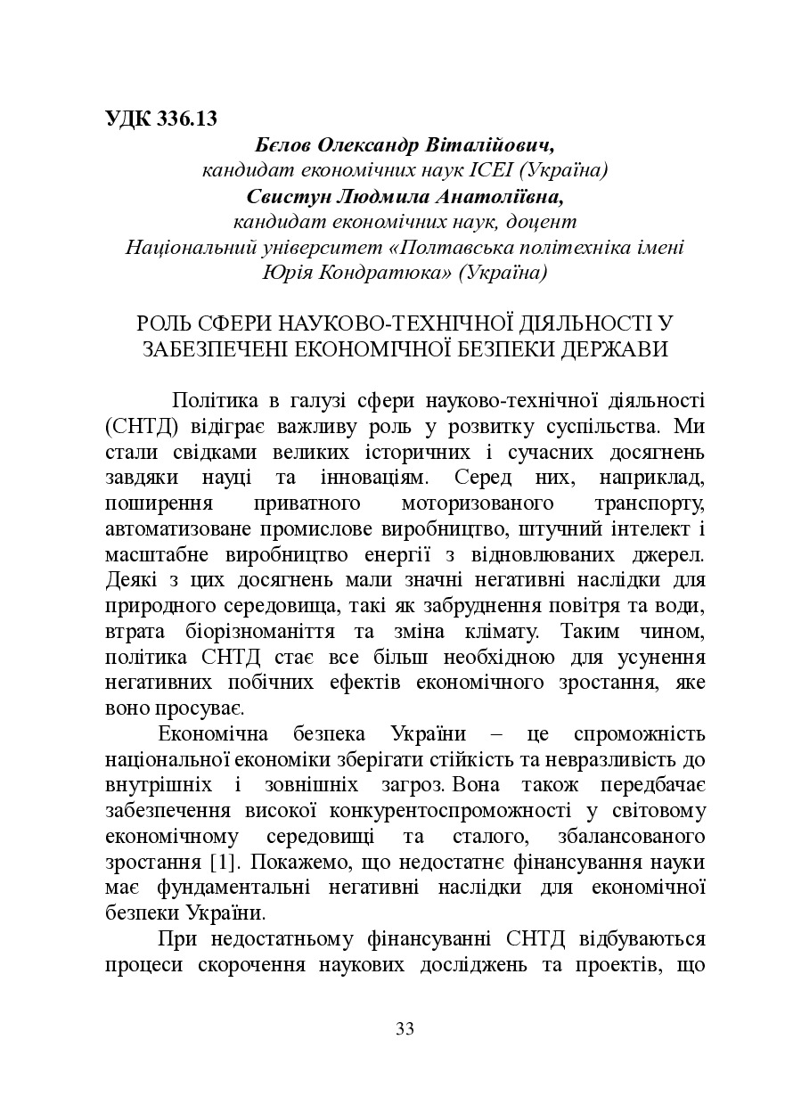 Роль сфери науково-технічної діяльності у забезпечені економічної безпеки держави