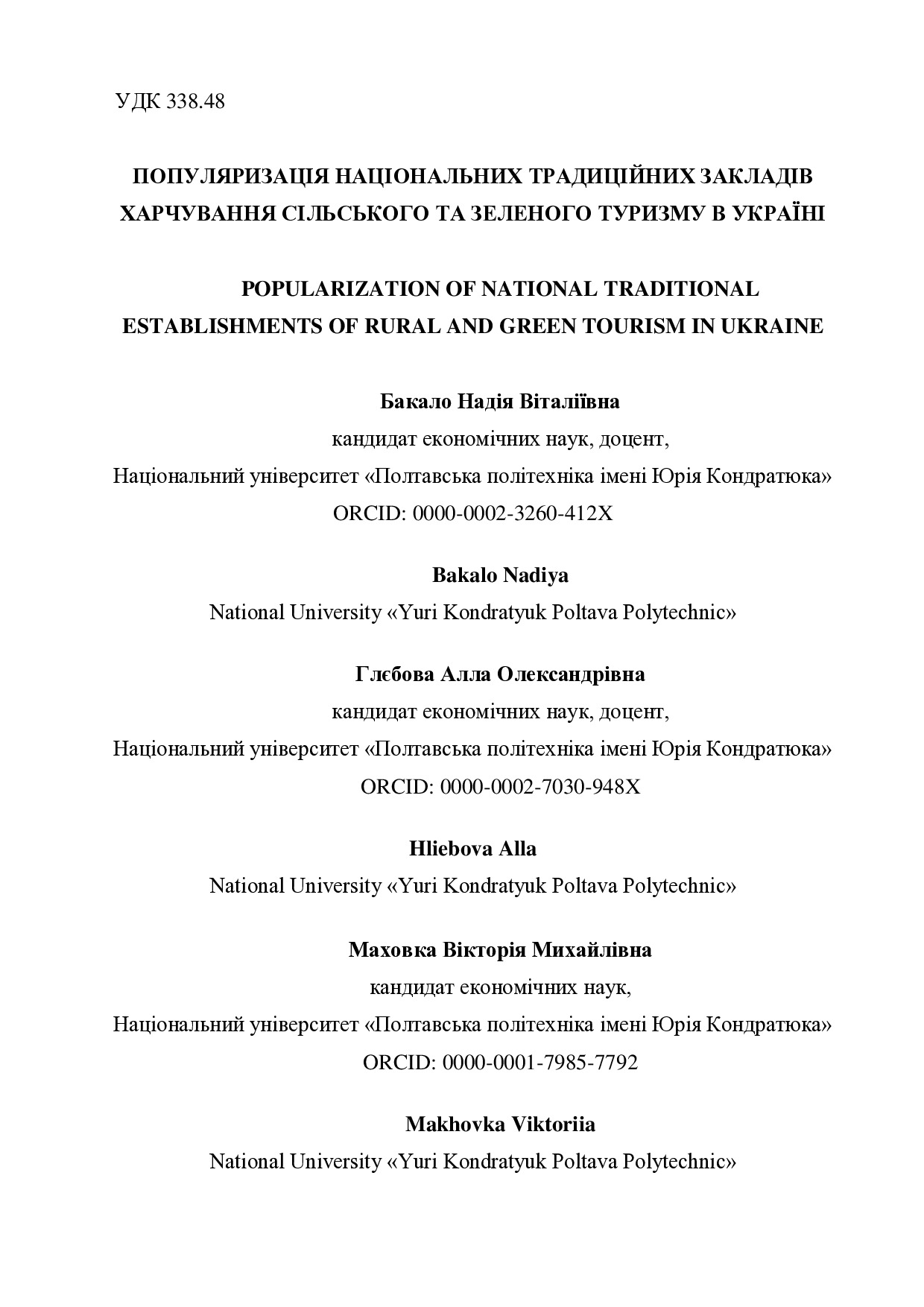 Популяризація національних традиційних закладів харчування сільського та зеленого туризму в Україні