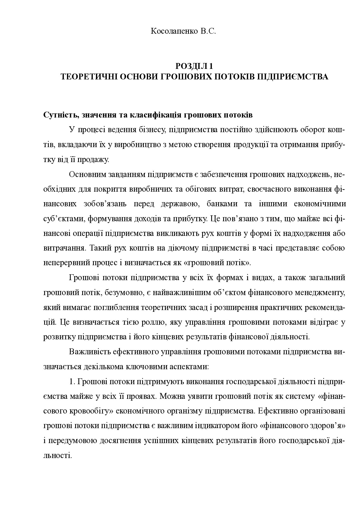 Управління грошовими потоками підприємства