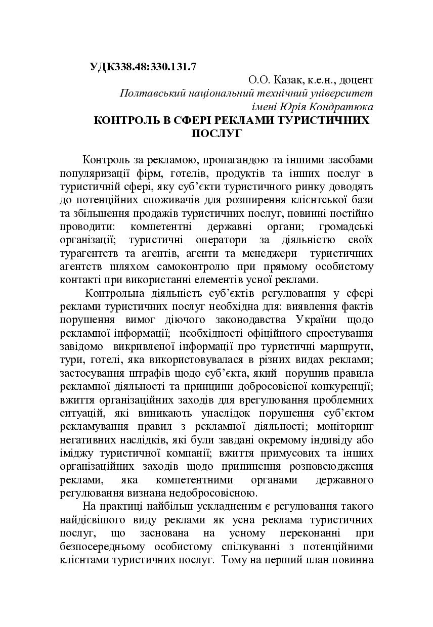 Контроль в сфері реклами туристичних послуг