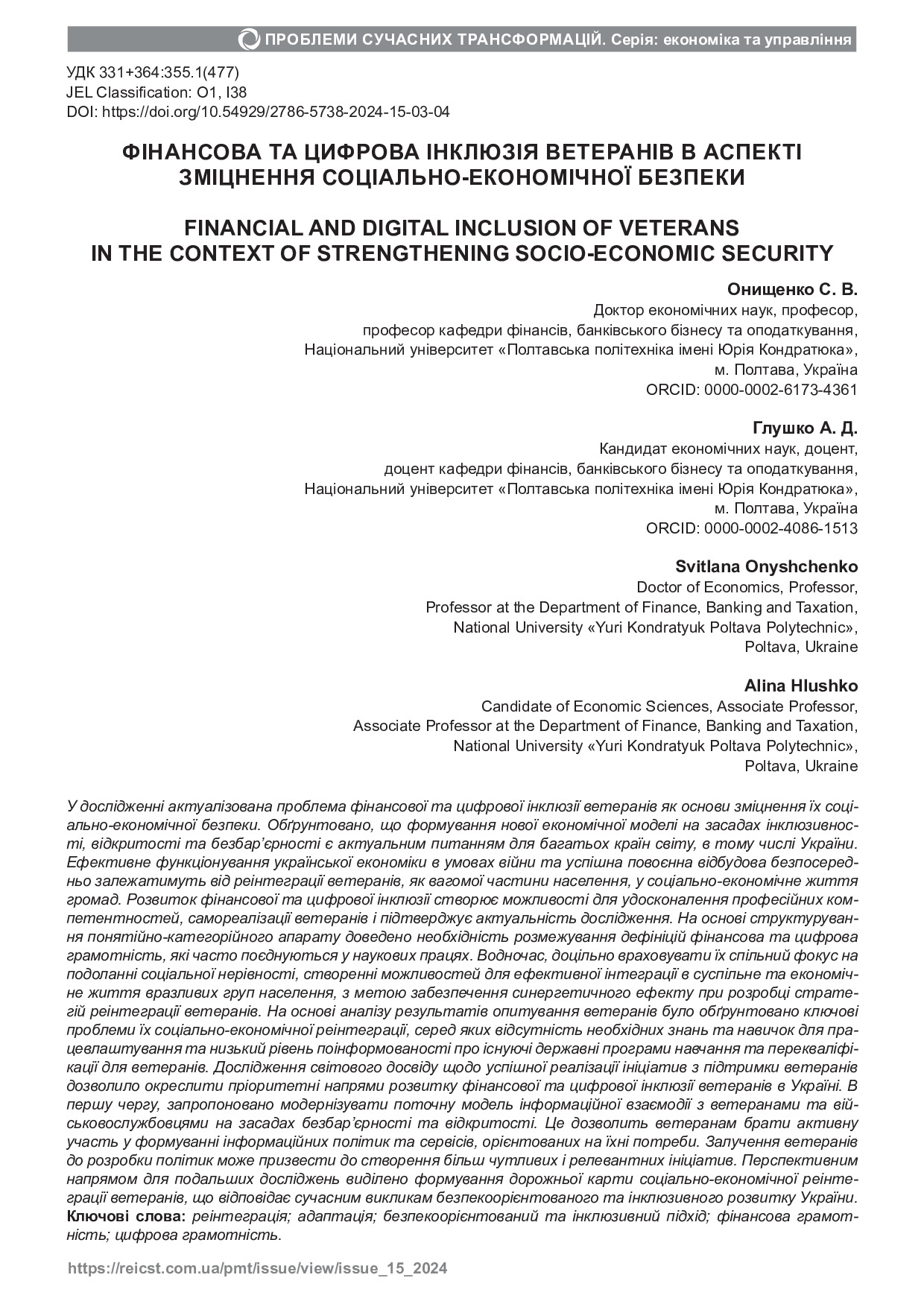 Фінансова та цифрова інклюзія ветеранів в аспекті зміцнення соціально-економічної безпеки