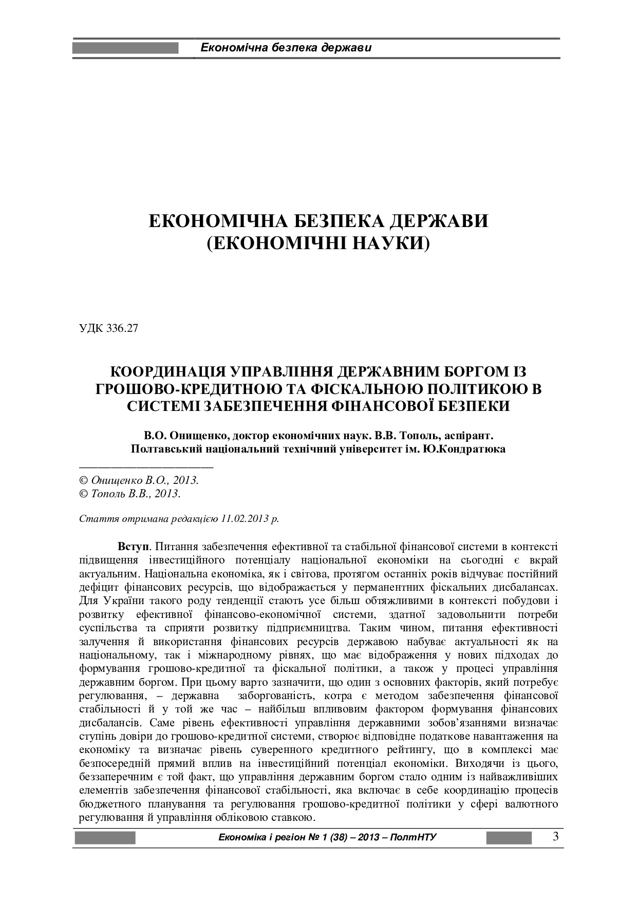 Координація управління державним боргом із грошово-кредитною та фіскальною політикою в системі забезпечення фінансової безпеки