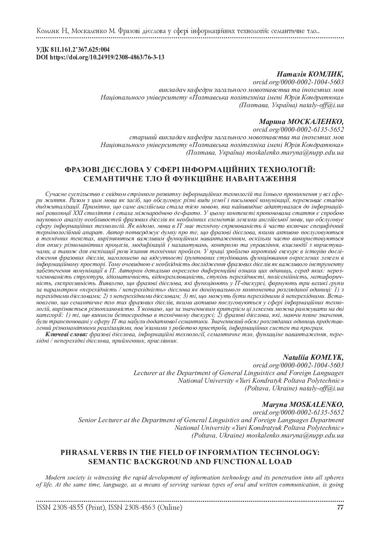Фразові дієслова у сфері інформаційних технологій: семантичне тло й функційне навантаження