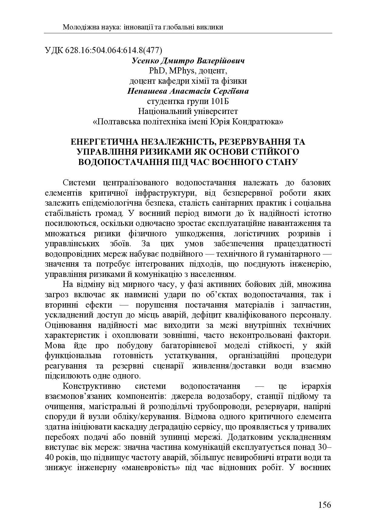 Енергетична незалежність, резервування та управління ризиками як основи стійкого водопостачання під час воєнного стану
