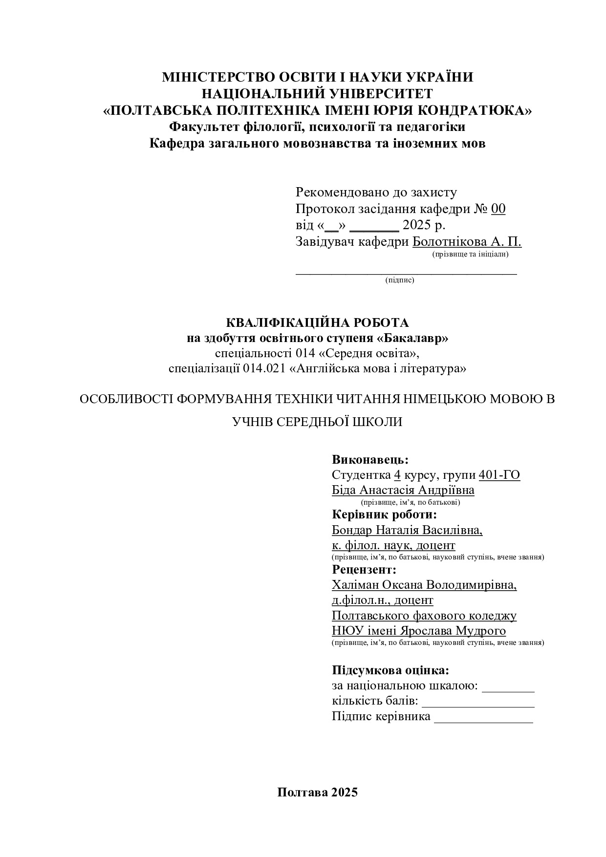 Особливості формування техніки читання німецькою мовою в учнів середньої школи