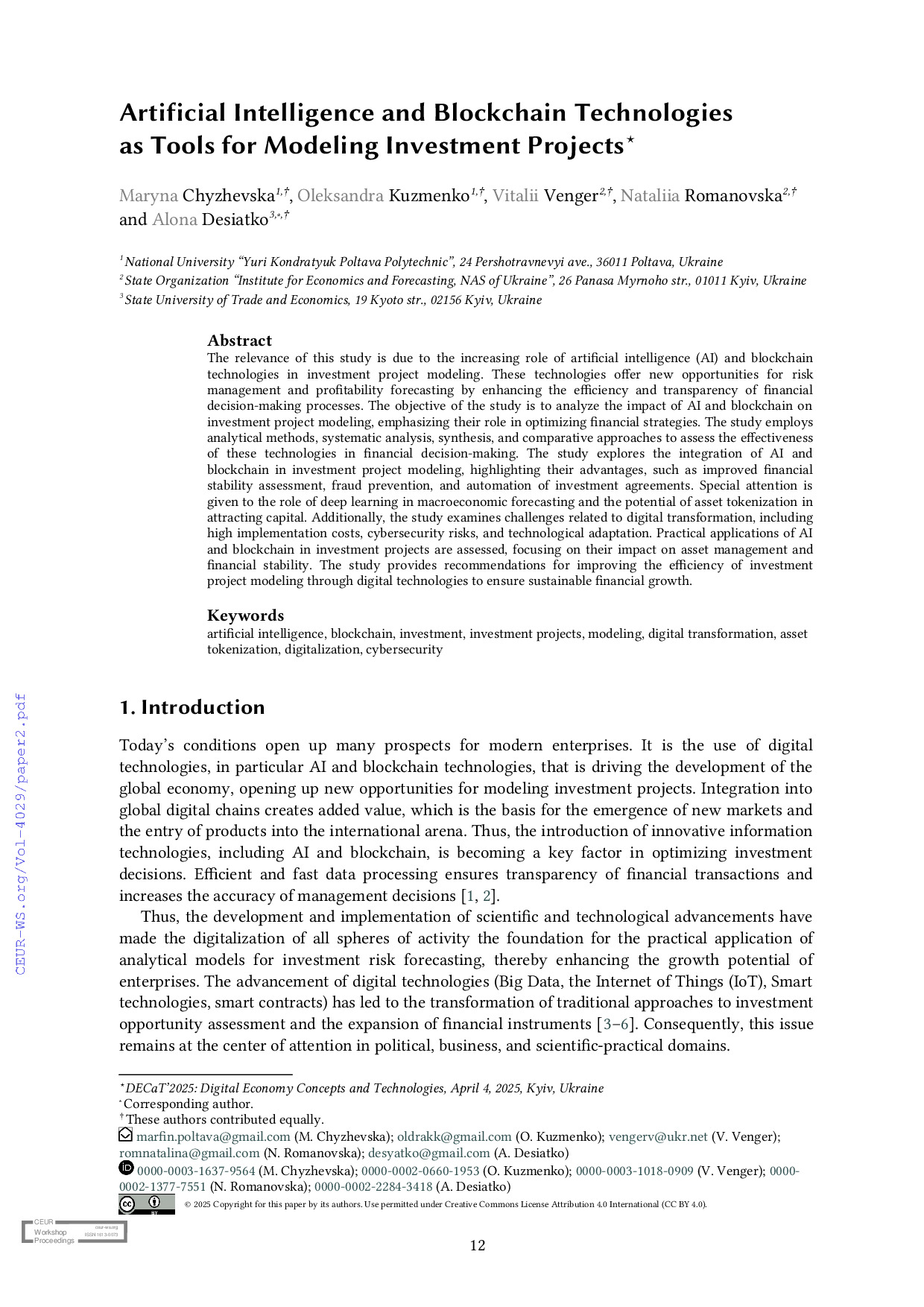 Artificial Intelligence and Blockchain Technologies as Tools for Modeling Investment Projects