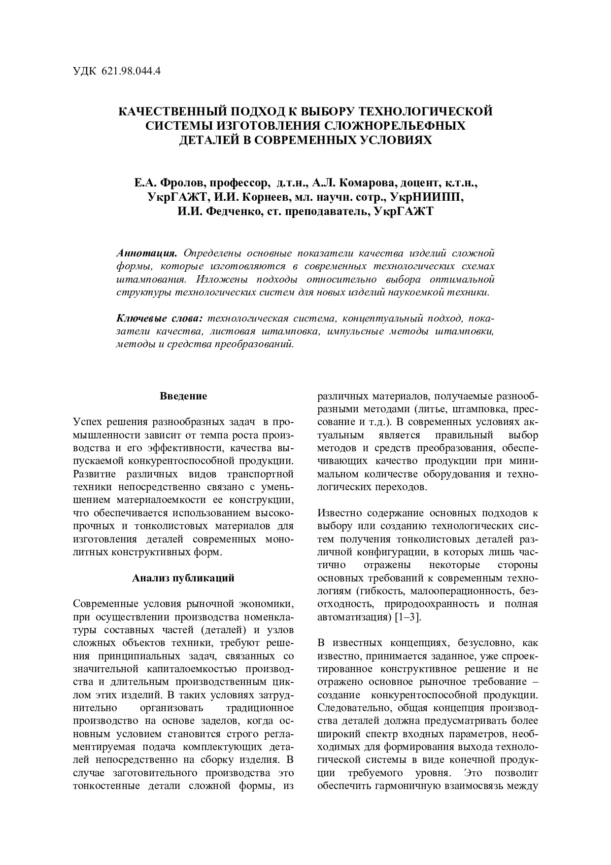 Качественный подход к выбору технологической системы изготовления сложнорельефных деталей в современных условиях