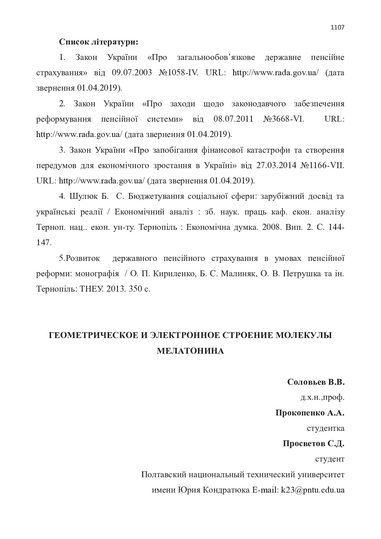 Геометрическое и электронное строение молекулы мелатонина