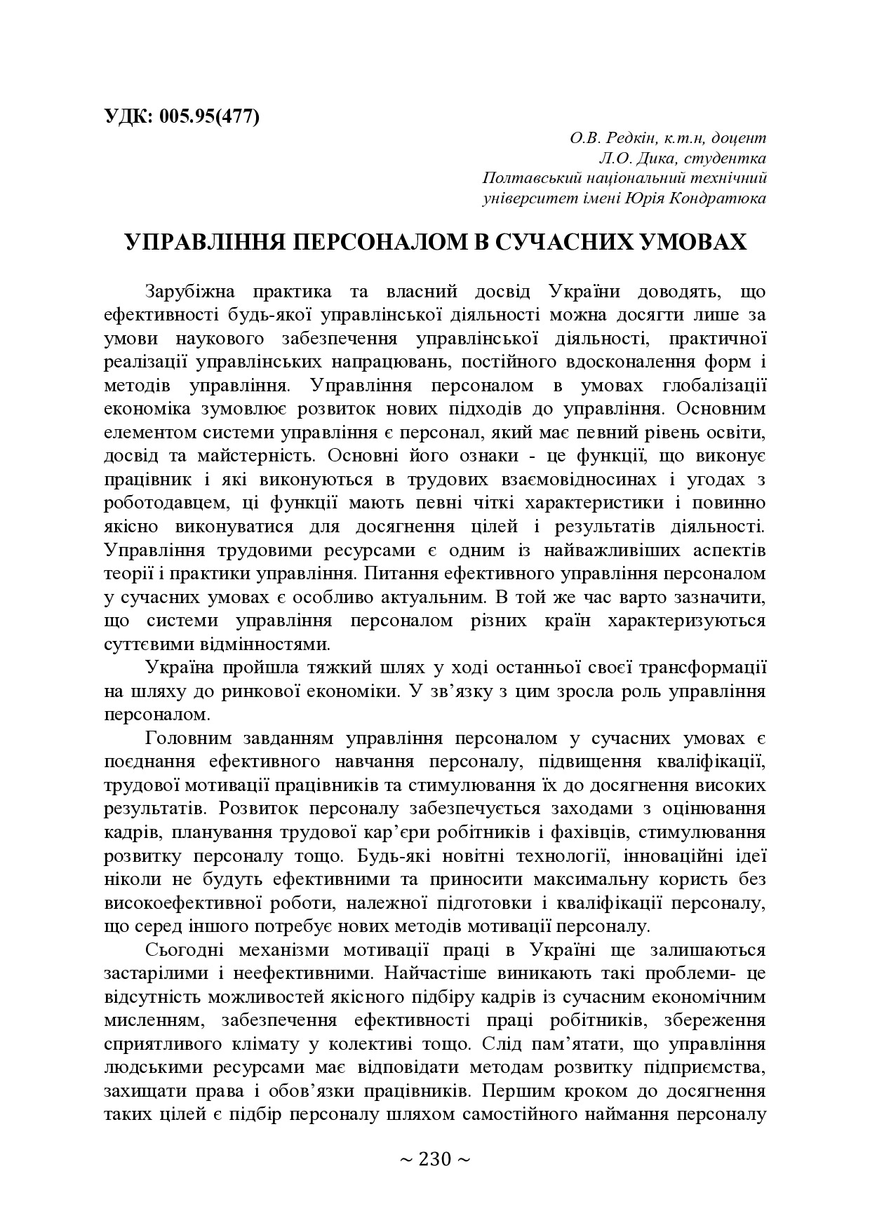 Управління персоналом в сучасних умовах