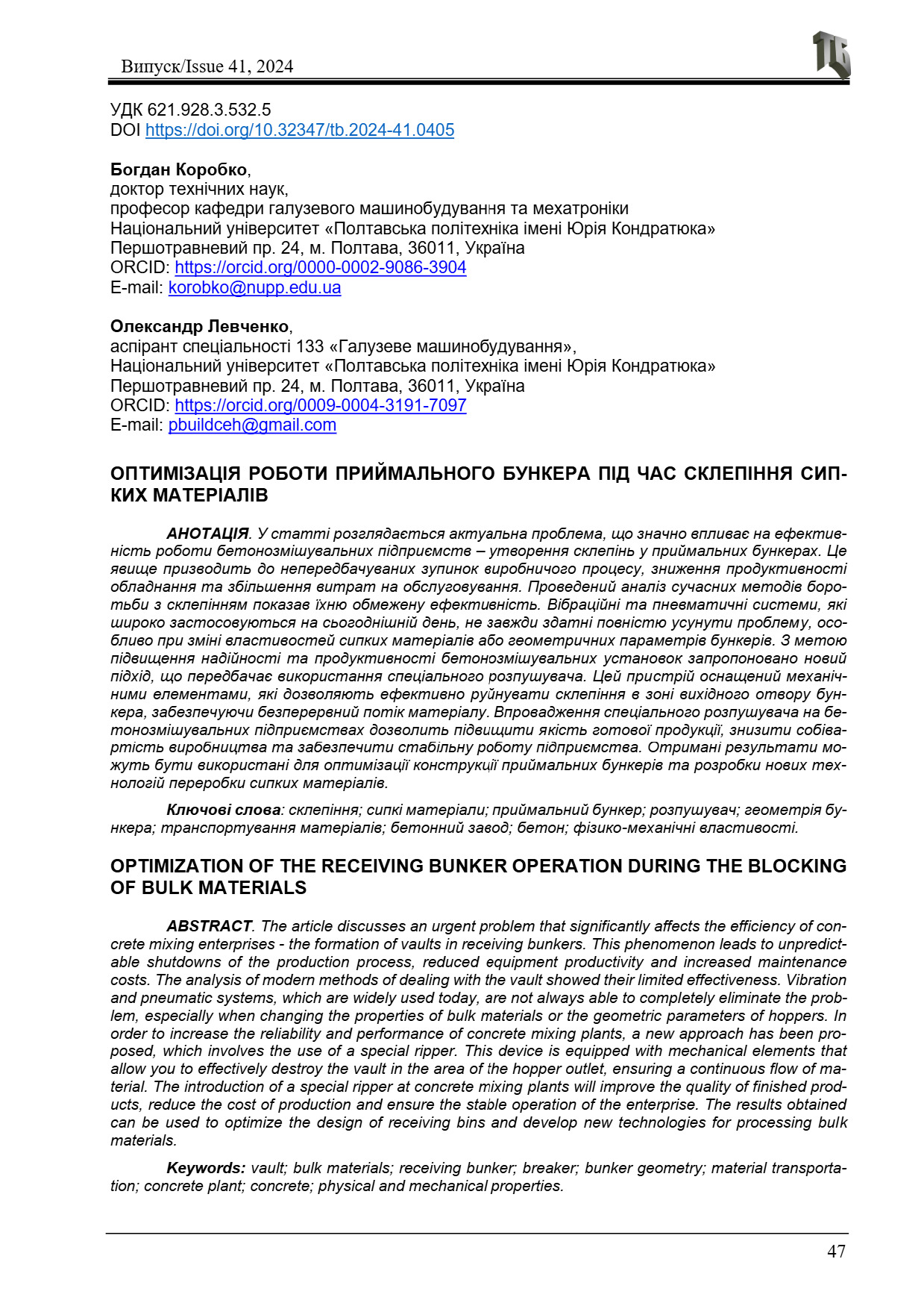 Оптимізація роботи приймального бункера під час склепіння сипких матеріалів