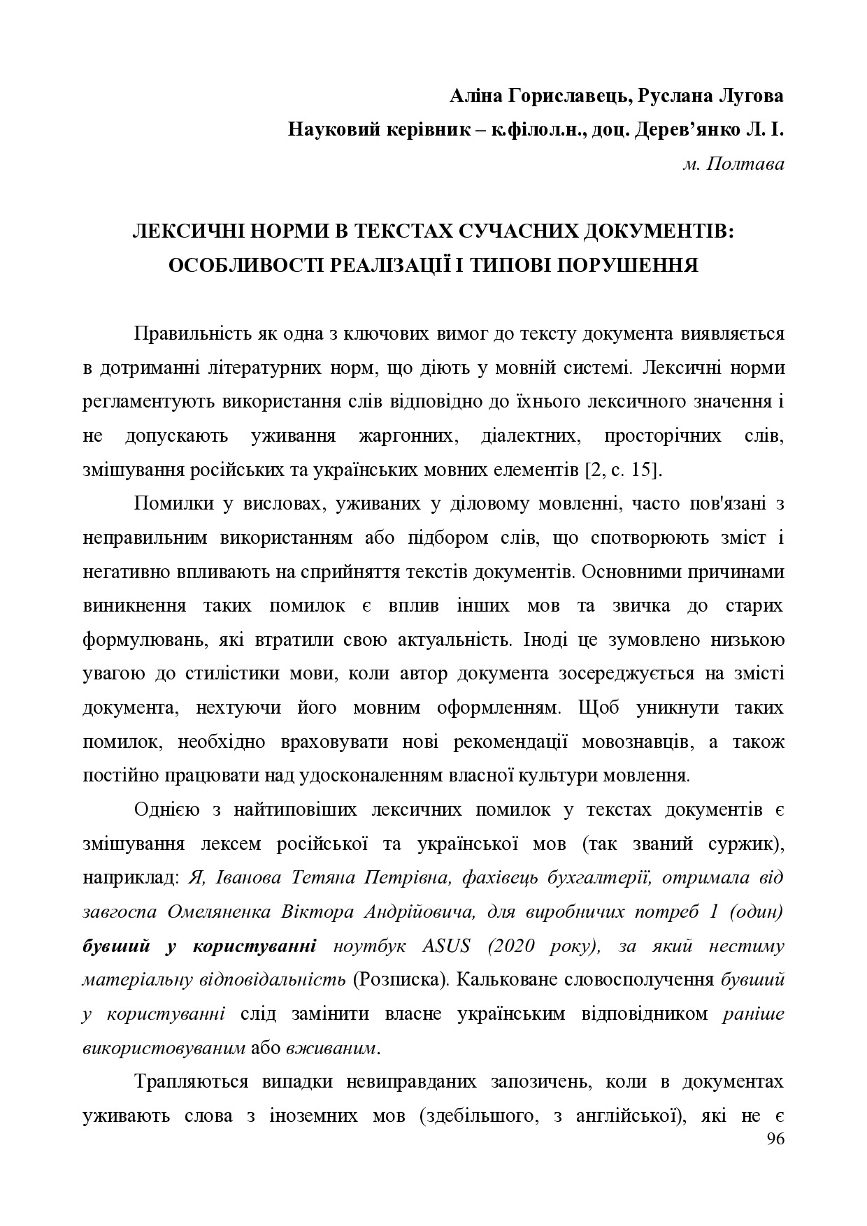 Лексичні норми в текстах сучасних документів: особливості реалізації і типові порушення