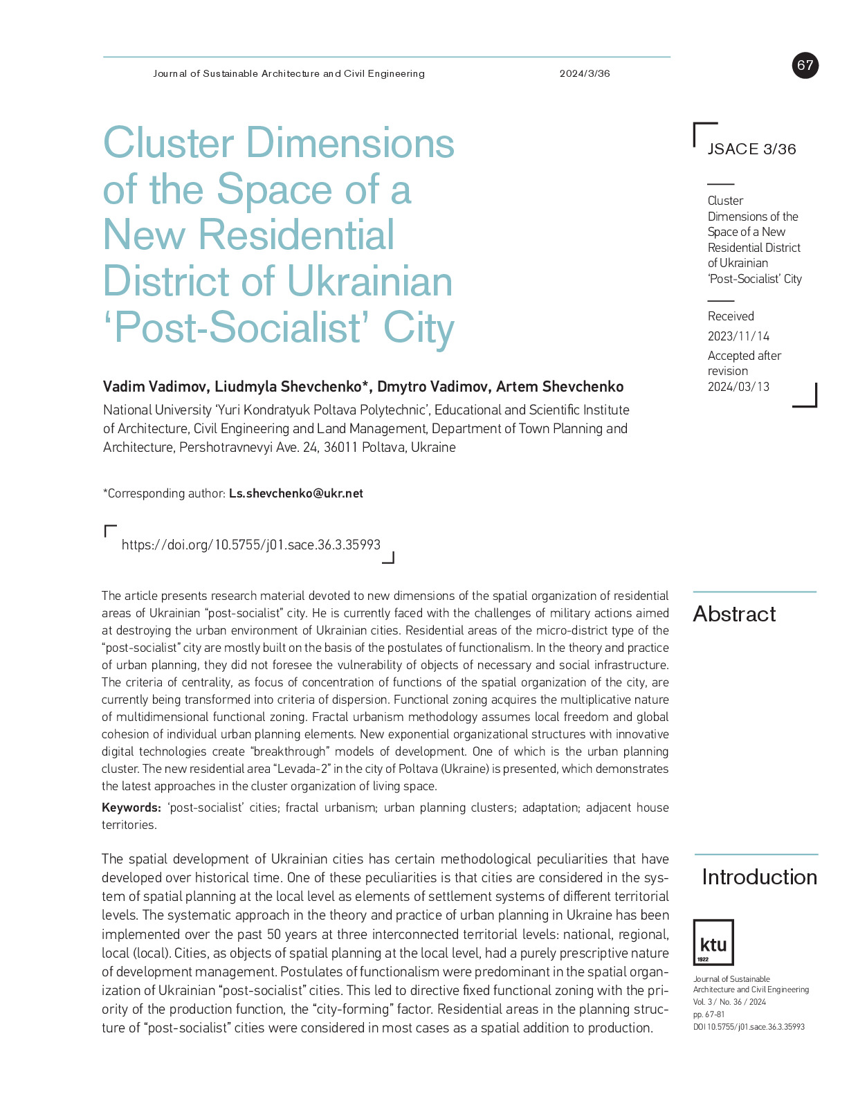 Cluster Dimensions of the Space of a New Residential District of Ukrainian “Post-Socialist”