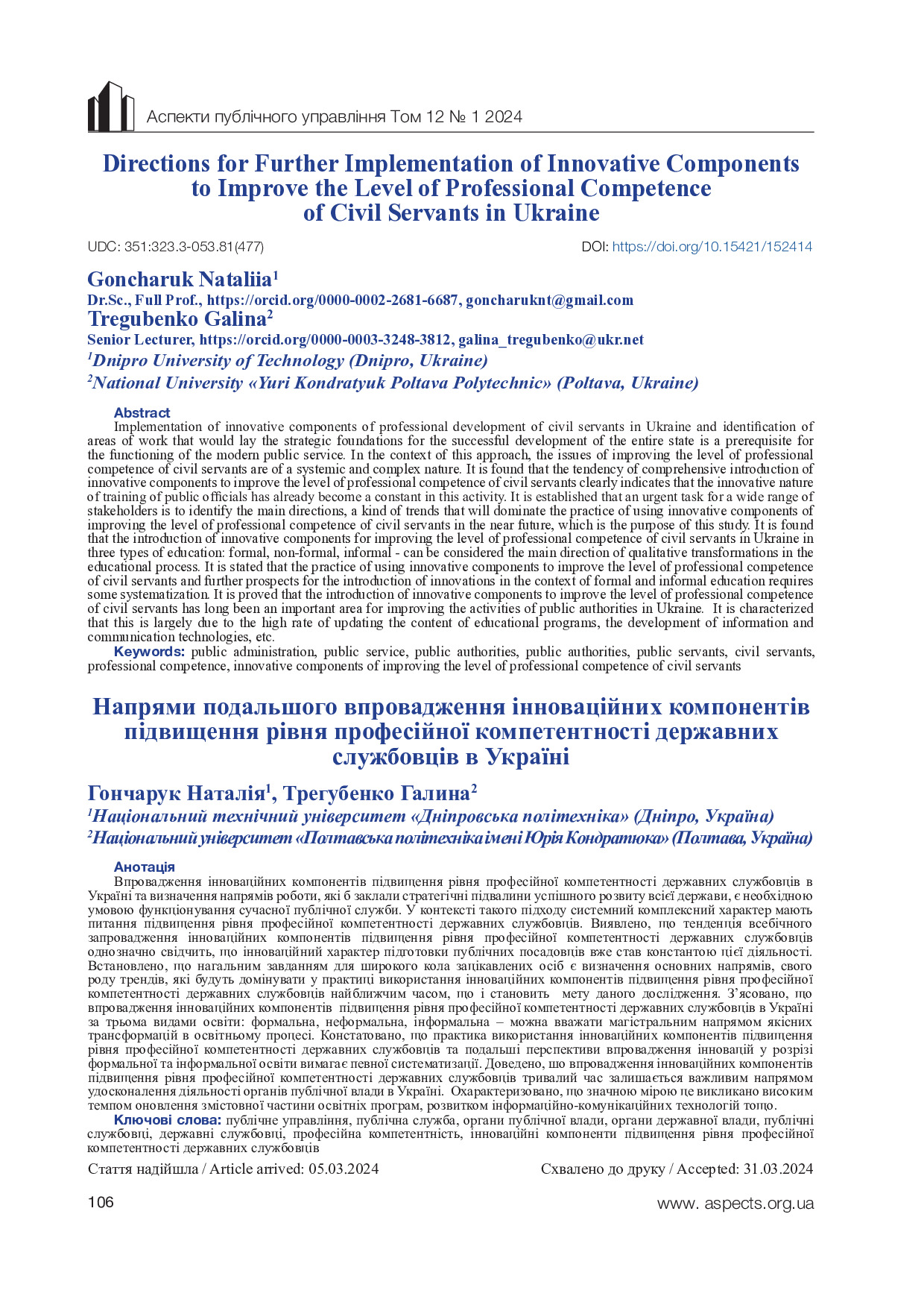 Напрями подальшого впровадження інноваційних компонентів підвищення рівня професійної компетентності державних службовців в Україні