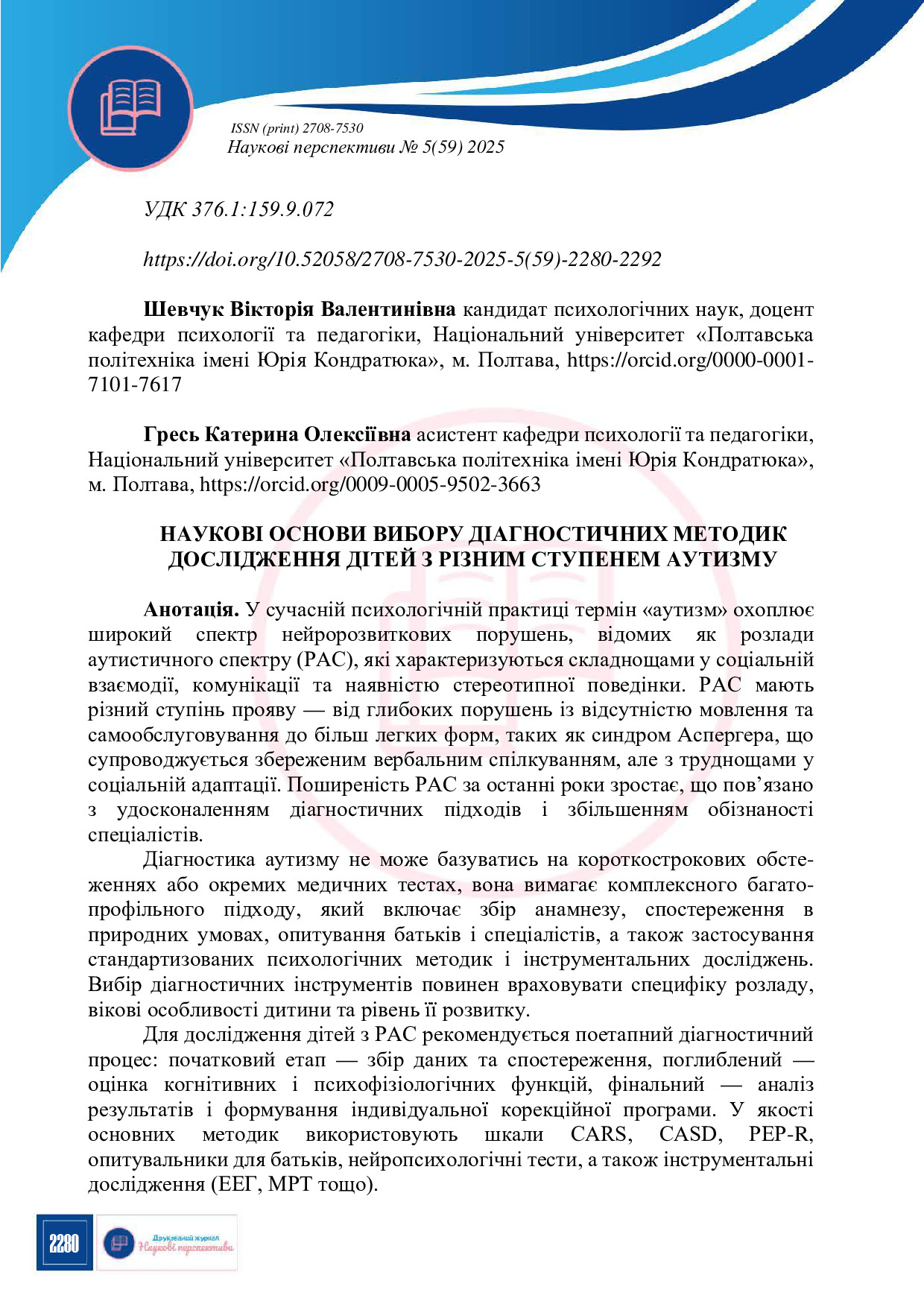 Наукові основи вибору діагностичних методик дослідження дітей з різним ступенем аутизму