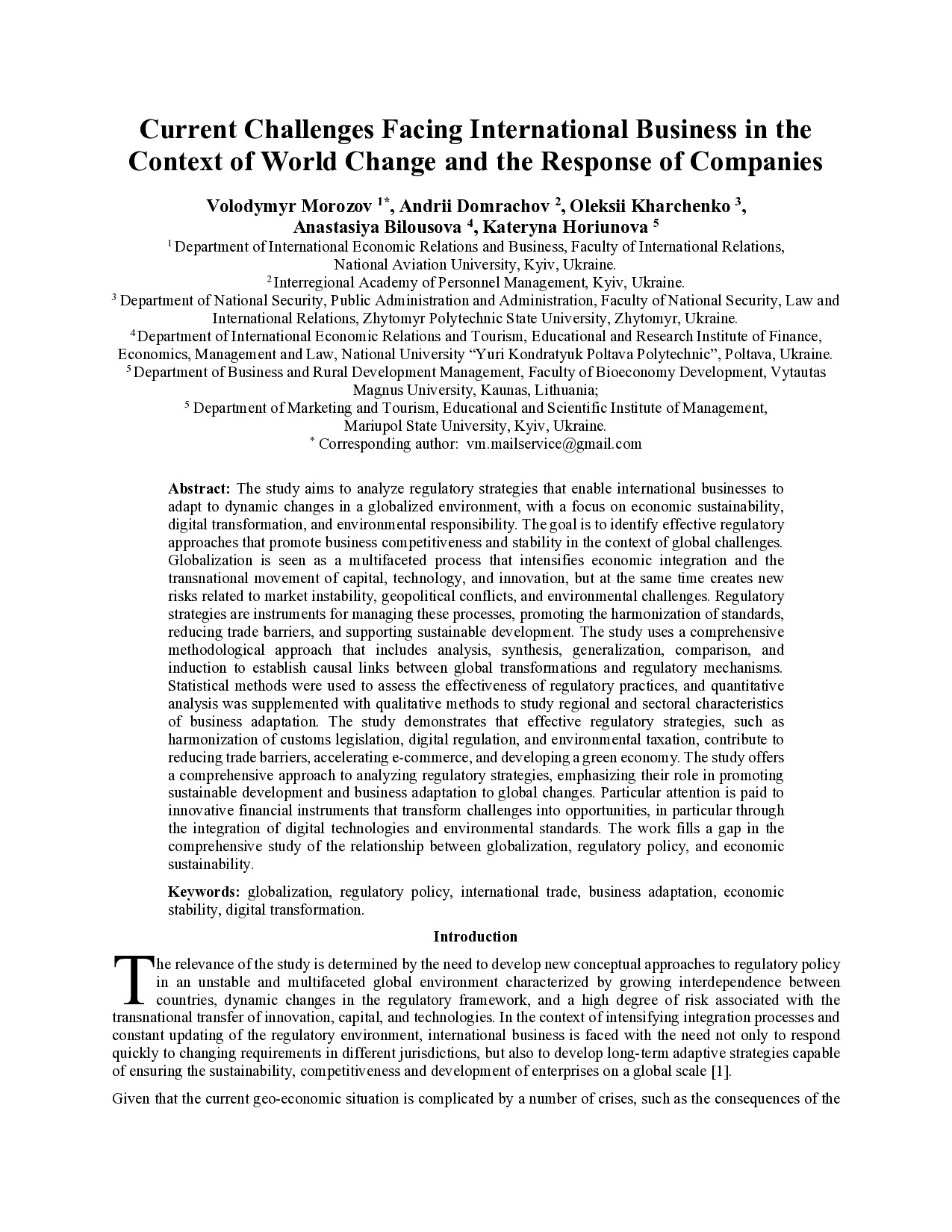 Current Challenges Facing International Business in the Context of World Change and the Response of Companies / V. Morozov, A. Domrachov, O. Kharchenko, A. Bilousova, K. Horiunova // OIDA International Journal of Sustainable Development. – 2025. – Vol. 18, № 11. – P. 167-176. – https://www.scopus.com/pages/publications/105013094985?origin=resultslist