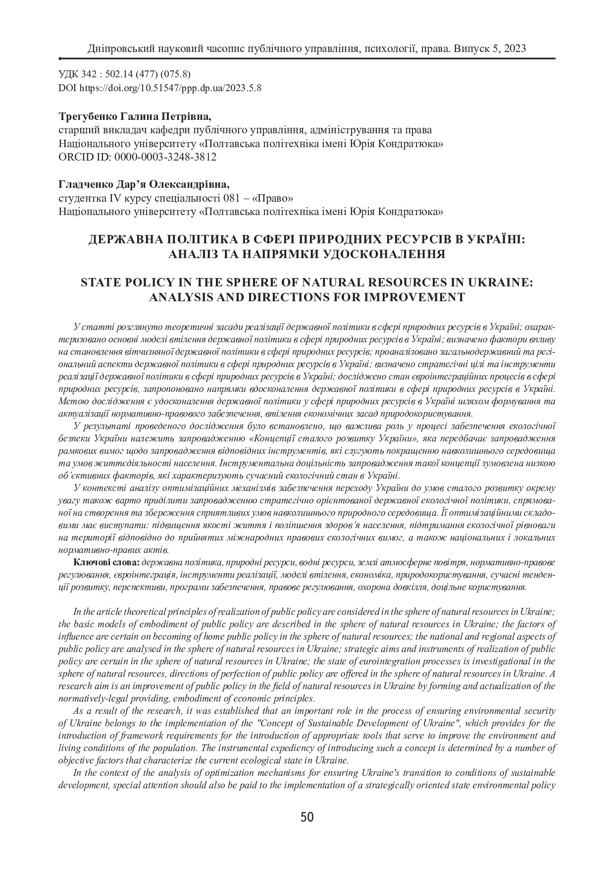 Державна політика в сфері природних ресурсів в Україні: аналіз та напрямки удосконалення