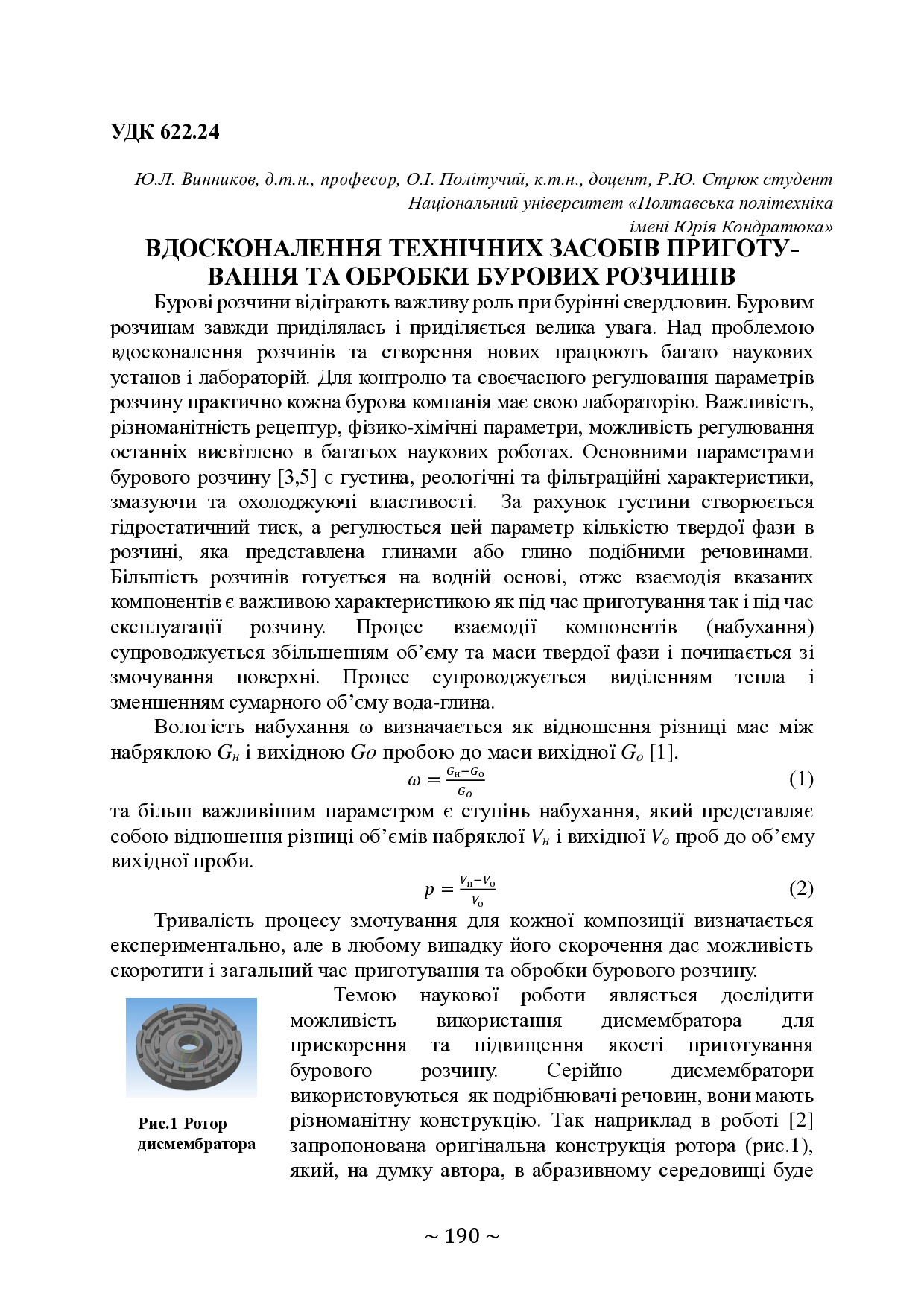 Вдосконалення технічних засобів приготування та обробки бурових розчинів