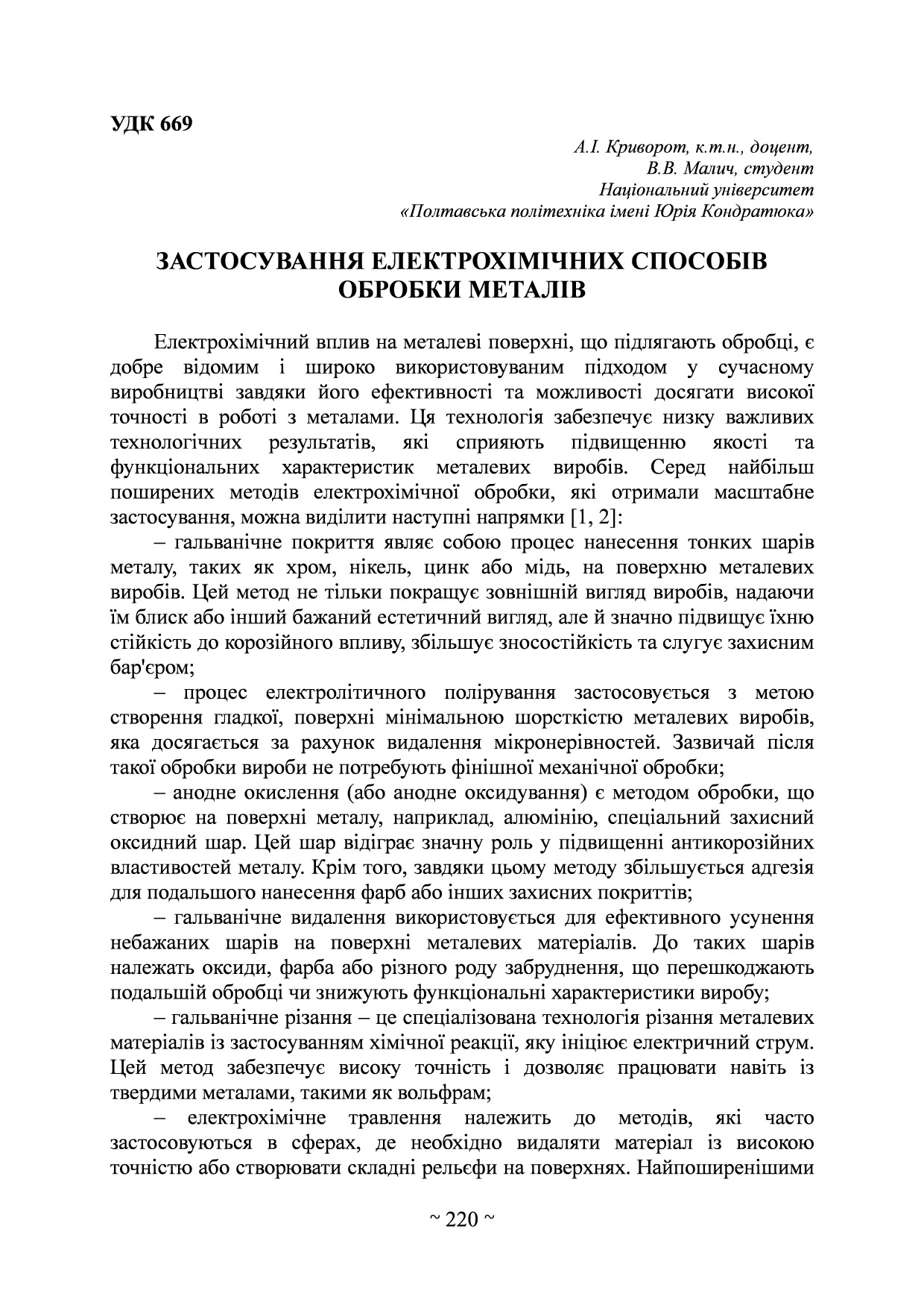 Застосування електрохімічних способів обробки металів
