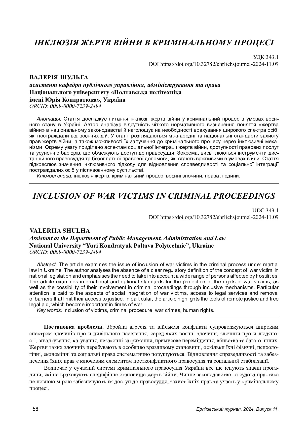 Інклюзія жертв війни у кримінальному процесі