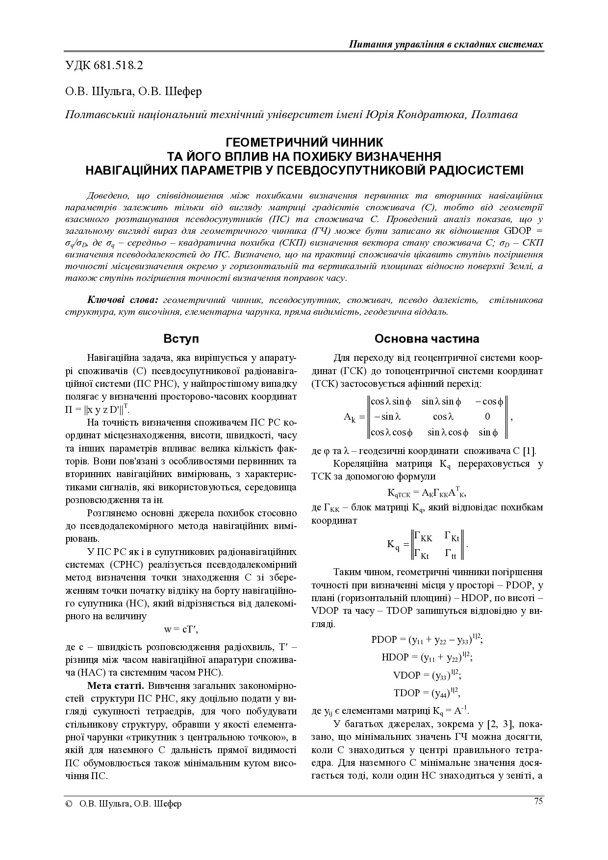 Геометричний чинник та його вплив на похибку визначення навігаційних параметрів у псевдосупутниковій радіосистемі