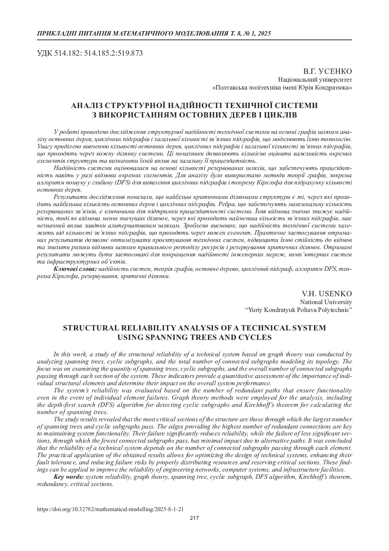 Аналіз структурної надійності технічної системи з використанням остовних дерев і циклів