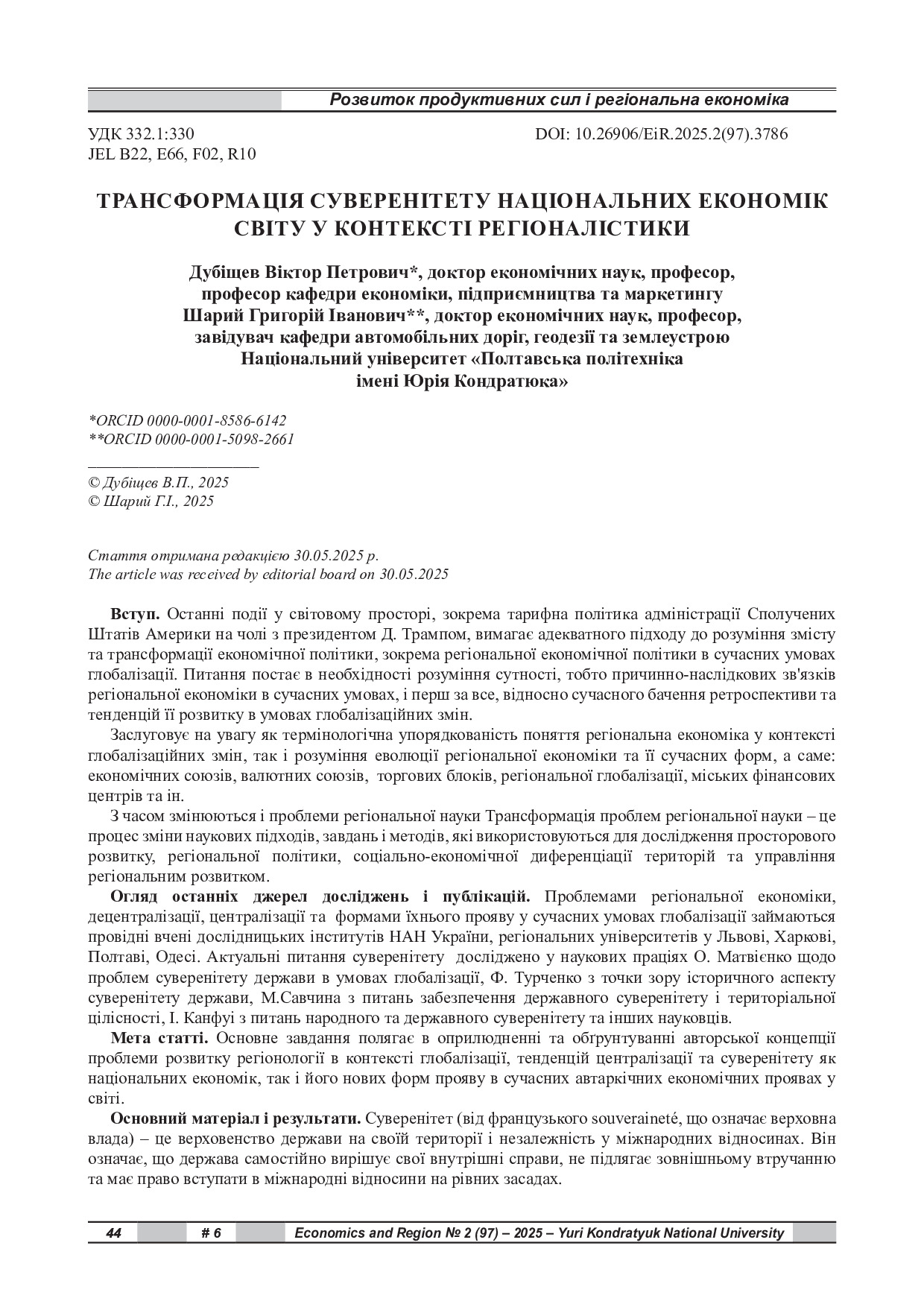 - Фахові видання Національного університету Полтавська політехніка імені Юрія Кондратюка"" » Економіка і регіон » Економіка і регіон. 2025. № 2 (97)