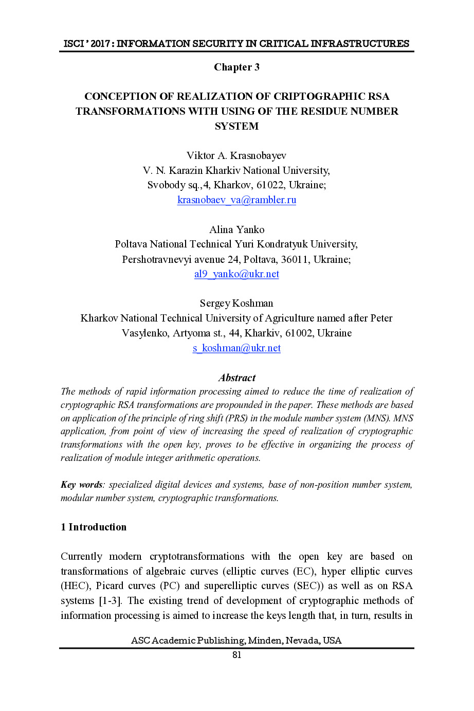 Conception of Realization of Criptographic RSA Transformations with Using of the Residue Number System