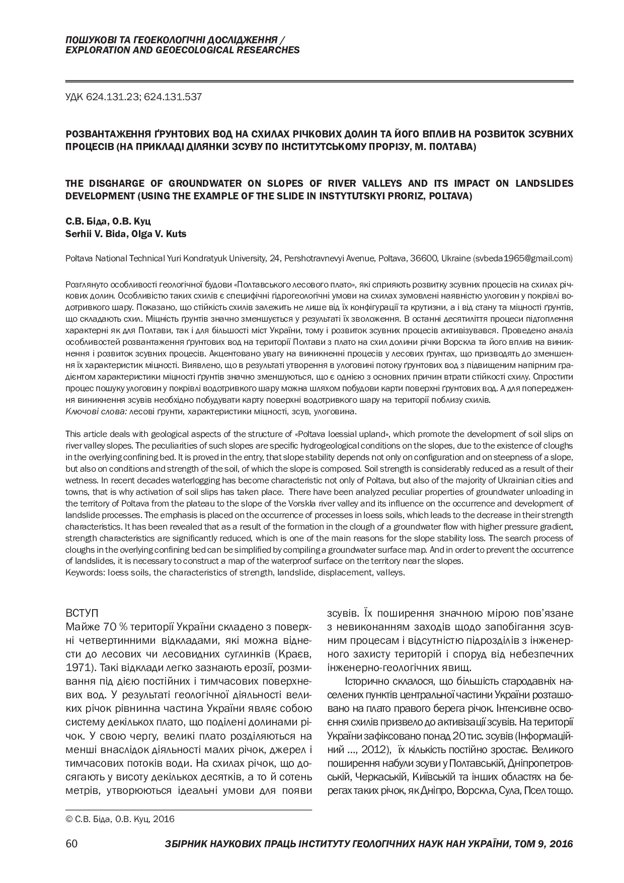 Розвантаження ґрунтових вод на схилах річкових долин та його вплив на розвиток зсувних процесів (на прикладі ділянки зсуву по Інститутському прорізу, м. Полтава)