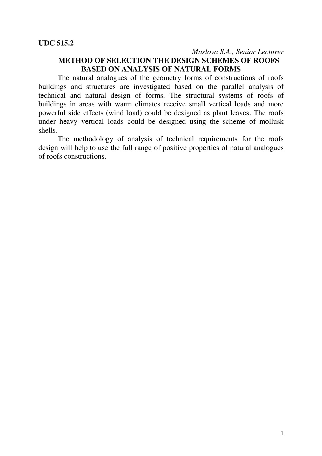 Method of selection the design schemes of roofs based on analysis of natural forms