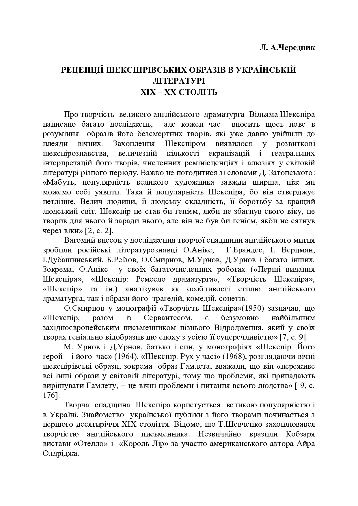 Рецепції Шекспірівських образів в українській літературі XIX – XX століть