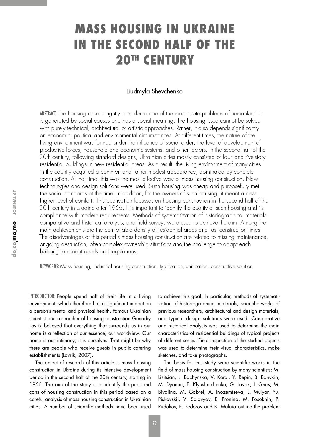 Mass Housing in Ukraine in the Second Half of the 20th Century