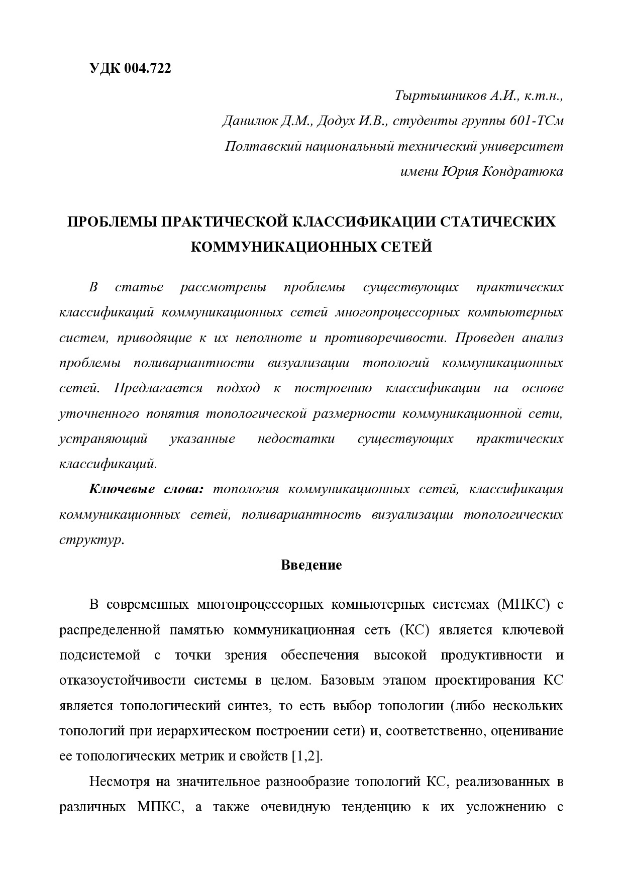 Проблемы практической классификации статических коммуникационных сетей