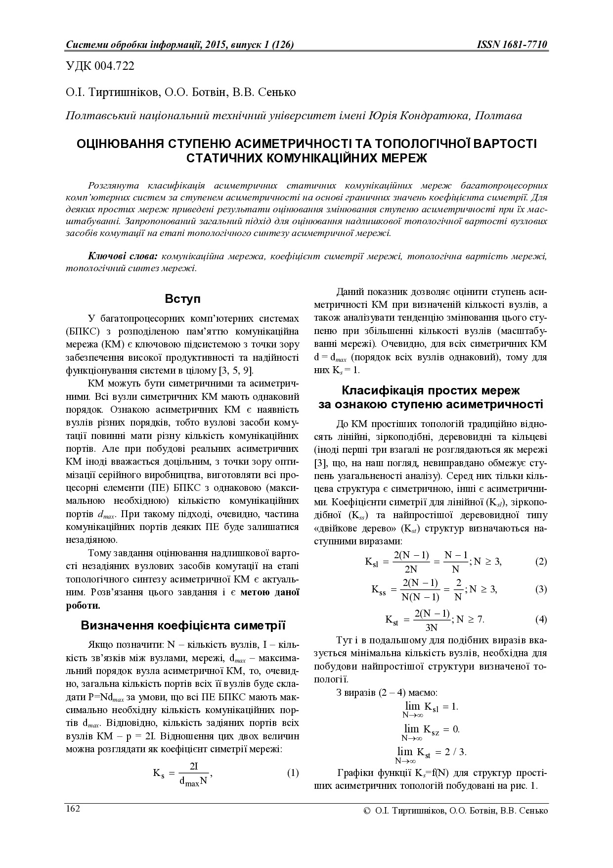 Оцінювання ступеню асиметричності та топологічної вартості статичних комунікаційних мереж