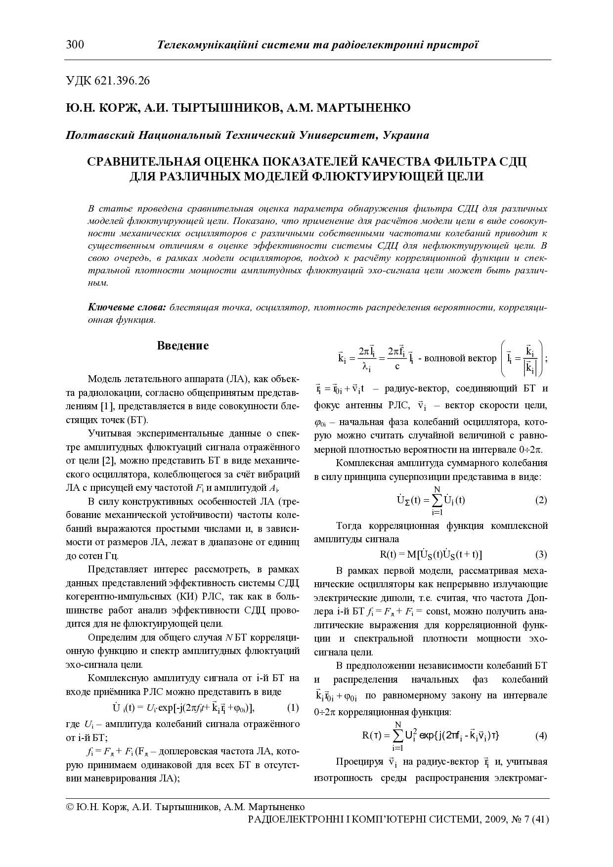 Сравнительная оценка показателей качества фильтра СДЦ для различных моделей флюктуирующей цели