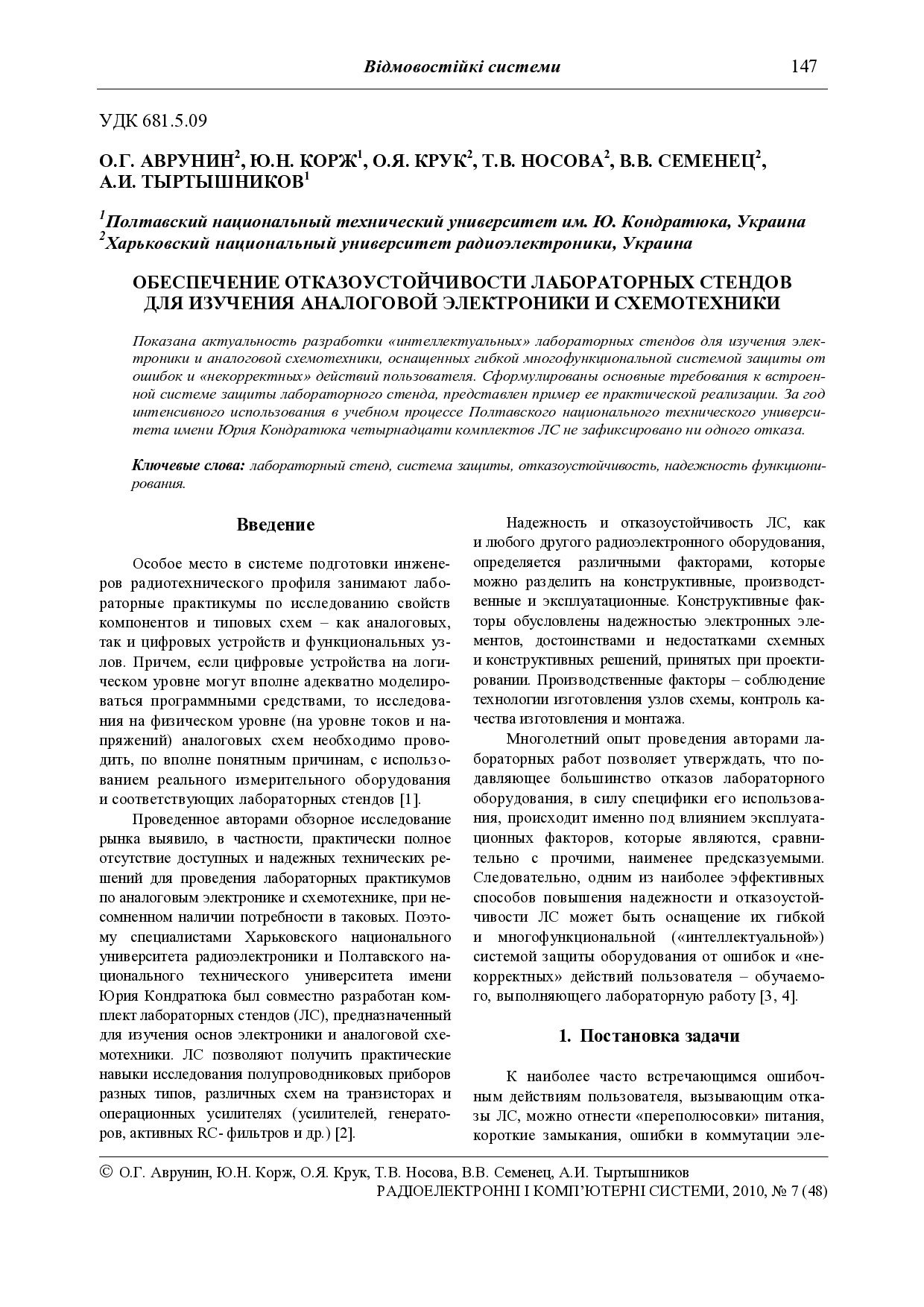 Аврунин О.Г. Обеспечение отказоустойчивости лабораторных стендов для изучения аналоговой электроники и схемотехники / О.Г. Аврунин, Ю.Н. Корж, О.Я. Крук та ін. // Радіоелектронні і комп’ютерні системи: наук.-техніч. журн. - Х: НАУ "ХАІ" , 2010. – Вип. 7(48). – С. 147 – 151.