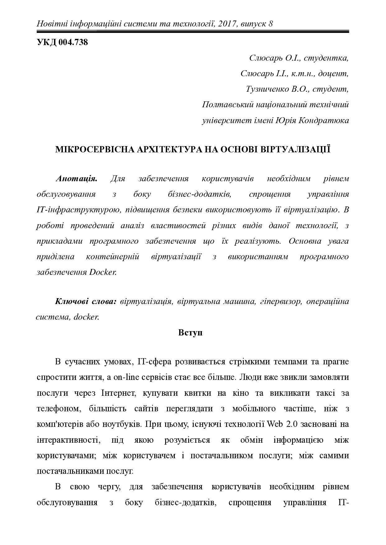 Мікросервісна архітектура на основі віртуалізації