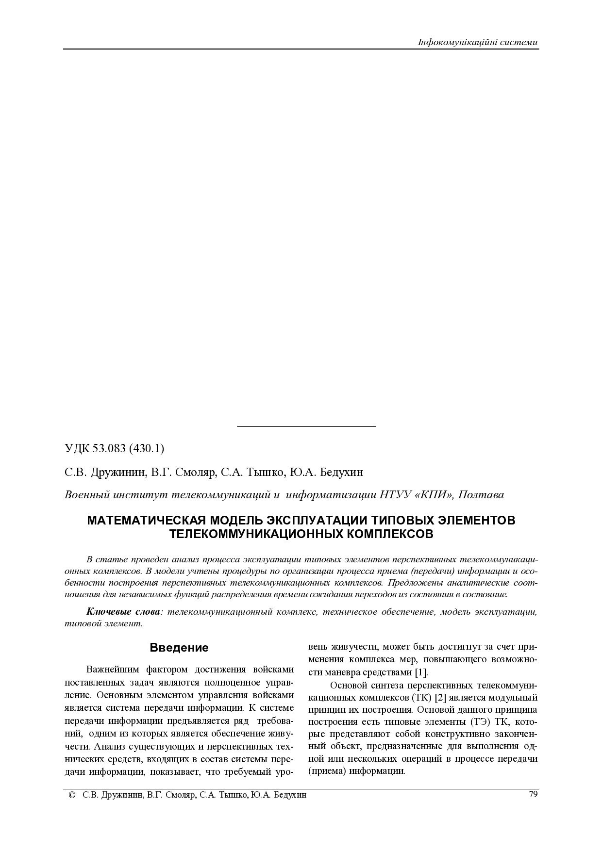 Математическая модель эксплуатации типовых элементов телекомуникационных комплексов