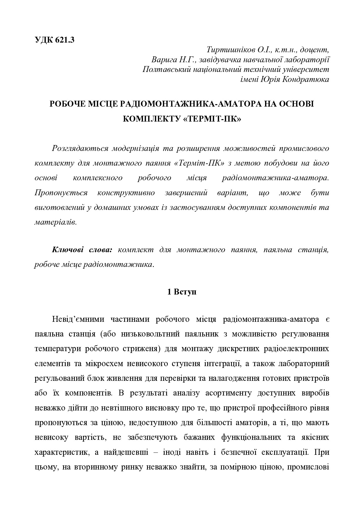 Робоче місце радіомонтажника-аматора на основі комплекту «Терміт-ПК»