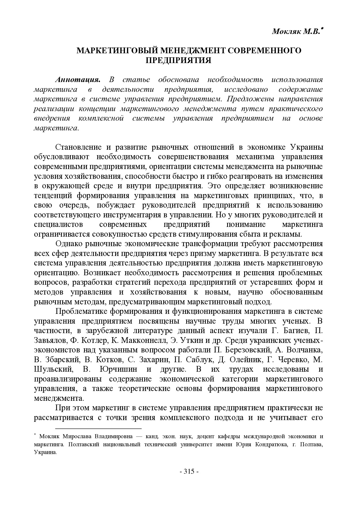 Маркетинговый менеджмент современного предприятия