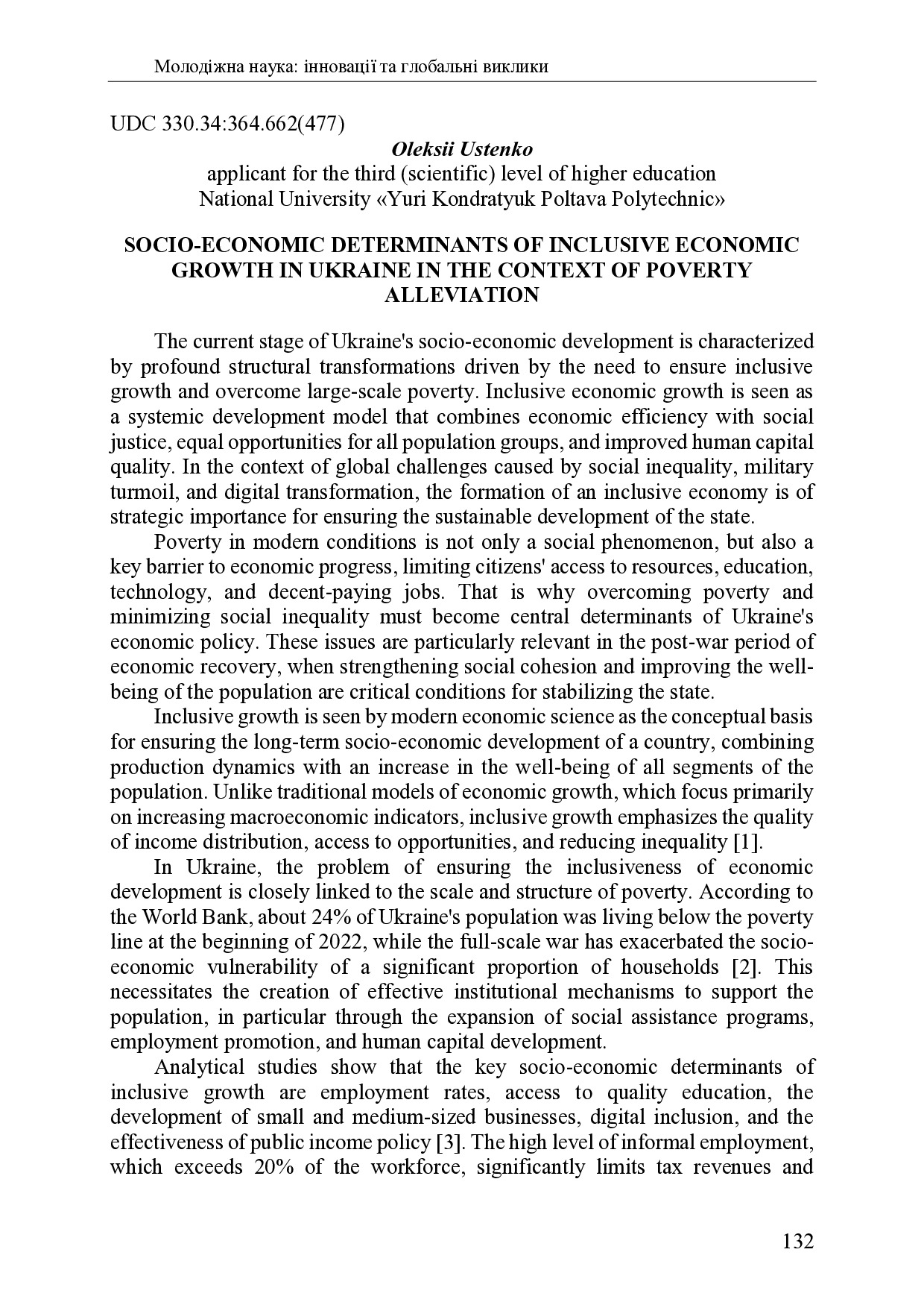 Socio-economic determinants of inclusive economic growth in Ukraine in the context of poverty alleviation