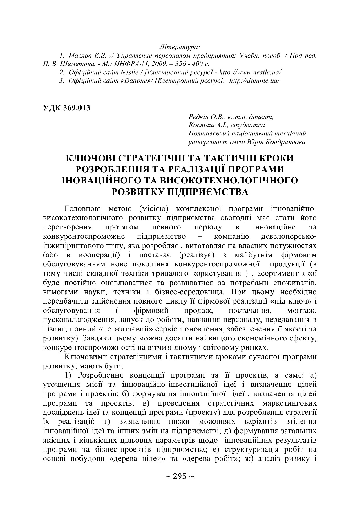 Ключові стратегічні та тактичні кроки розроблення і реалізації програми інноваційного та високотехнологічного розвитку підприємства