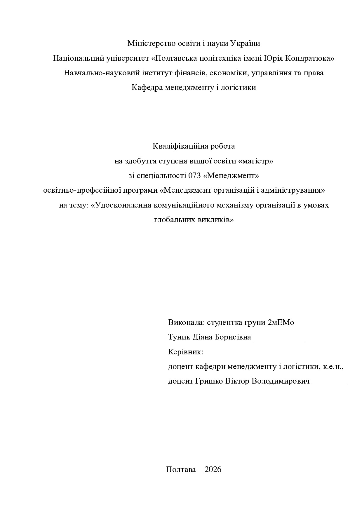 Удосконалення комунікаційного механізму організації в умовах глобальних викликів